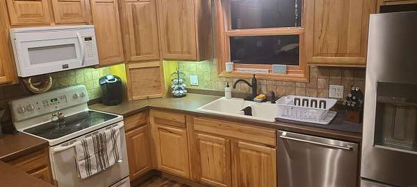 - Appliances Negotiable, Dishwasher, Disposal, Gas Water Heater, Micro Hood, Microwave, Microwave Built in, Vented Exhaust Fan