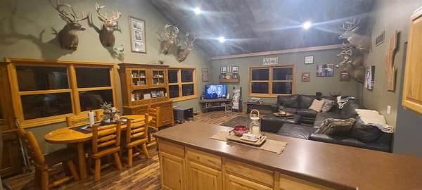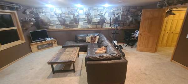 Discover a unique Marquette property offering the best of both in-town convenience and country living. Perched above the "bench" next to the water tower, this home is a private outdoor oasis set on 3.13 acres with abundant timber. This home is an outdoorsman's dream, with the property providing a habitat for whitetail deer and turkey. An outdoor converted grain bin offers a distinctive gathering spot for friends and family. Inside, the home features a functional layout with three bedrooms and three bathrooms, including a primary suite on the main level. The lower level includes a family room with a future wet bar area, while a large wrap-around deck is the ideal place to enjoy the beautiful fall foliage. Additional amenities include a two-stall heated and attached garage.