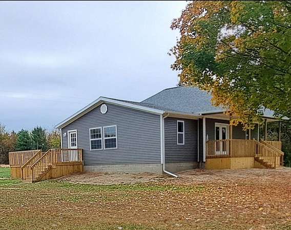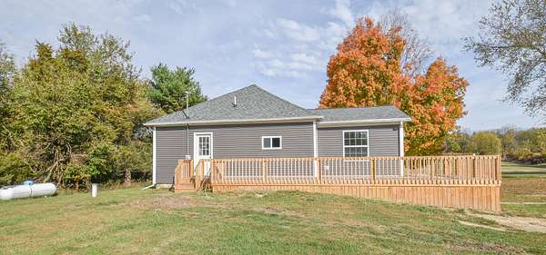 Welcome home to this beautifully renovated 3-bedroom, 1-bath gem that perfectly blends comfort and charm. The open floor plan creates a warm and inviting flow throughout the spacious living room, bright kitchen with an eating area, and convenient main-floor laundry room. The kitchen features custom-built maple cabinetry crafted by Stoll Woodworking, adding warmth and quality to the heart of the home. Step outside to enjoy your morning coffee on the welcoming front porch or relax and entertain on the large deck overlooking the backyard. The property is truly special with over 130 trees, including more than 100 hardwoods such as oak, walnut, maple, and cherry, plus a picturesque pond site waiting to be enjoyed or developed. An oversized 2-car detached garage offers plenty of storage and workspace, and the large greenhouse is ideal for gardening enthusiasts. This move-in-ready home has everything you need and more! This company makes no warranty or representations about the contents of this data. It is the responsibility of the parties looking at the property to satisfy themselves as to accuracy of this information. Taxes were obtained from the local assessor and the taxes could change for the buyer after a closed transaction.