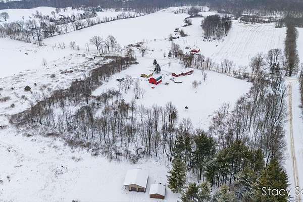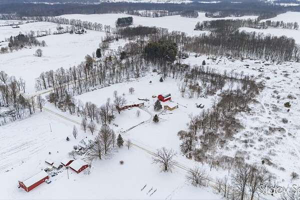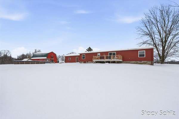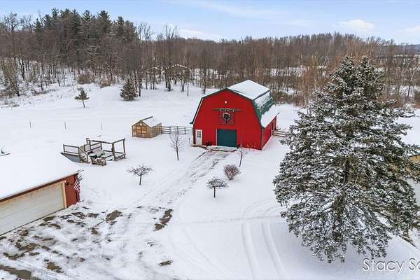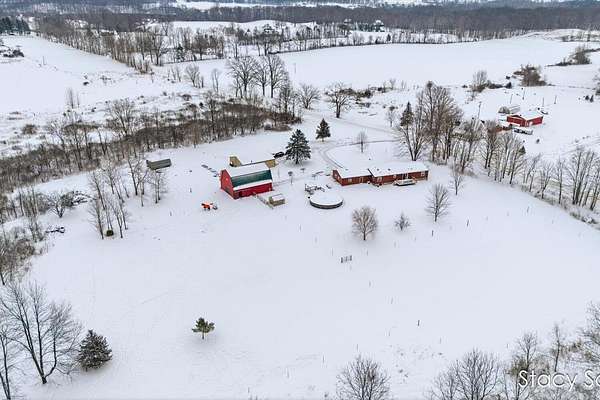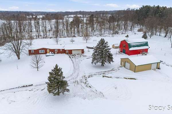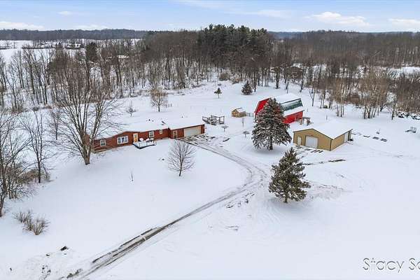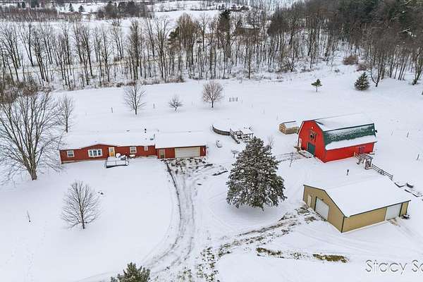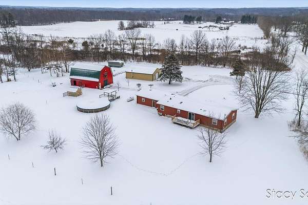 Welcome to the perfect blend of comfort, space, and country charm. This beautifully updated 3-bedroom, 2-bath ranch sits on 10 scenic acres and is ready to impress both inside and out. The home features an upgraded kitchen with newer stainless steel appliances, refreshed baths, updated windows, and newer flooring throughout, all anchored by a cozy electric fireplace for effortless ambiance. Step outside and discover a property built for living and working the land. An attached 2 stall garage, plus a 40x30 pole barn with workshop provides ample space for projects, storage, while the impressive 2 story 40x30 gambrel barn includes a tack room, office, and 2 existing stalls-with the potential to expand to six-making it ideal for equestrian or hobby farm use. Approximately 4 acres are fenced with electric fencing, offering peace of mind for animals. Outdoor living truly shines here with a newer front porch, a back deck reinforced for a hot tub, an above-ground pool w/sun deck, and a custom-built propane fire pit perfect for evenings under the stars. An 8x8 greenhouse and abundant perennial flower gardens complete this serene setting, offering beauty in every season. Whether you are dreaming of a hobby farm, space to roam, or a private retreat with modern updates already in place, this property delivers the opportunity to have it all. Call for your private showing today.