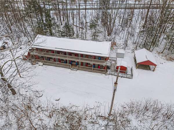 Turnkey waterfront motel investment in a prime Delaware River fly-fishing destination, surrounded by mountains, tranquility, and year-round outdoor recreation. This 2,489 SF motel features 12 guest rooms set on a riverfront parcel in one of the most sought-after stretches of the historic Delaware River - a true angler's paradise and retreat destination. The property includes two detached income-producing buildings: a 600 SF double-wide residence offering 2 bedrooms and 1 bath, and a 1,200 SF duplex with two separate apartments, each featuring 1 bedroom and 1 baths. Both detached units are separately metered for utilities, providing additional income efficiency and flexibility. Amenities include 20+ off-street parking spaces, a detached office, on-site laundry in the basement, and owned solar panels, helping offset operating costs. Ideal for an owner-operator, short-term rental strategy, or repositioning play, this property offers multiple revenue streams in a location synonymous with relaxation, fishing, hiking, and escape from city life.