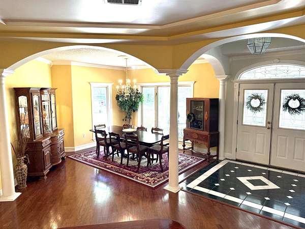 Est $3,412/moBeautiful custom home built on 1.96 acres. Lots of trees surrounding the property. 4BR with primary BR down including FRPl and sitting room/split vanities/large tub/two walk-in closets/toilet closet. Office and bonus room up. Large Kitchen with high bar/eating area/pantry/keeping room with FRPL. Formal dining room and two story entry. Living room. Both front and back covered porches. Large 32' x 52' barn with power. Above ground pool completely fenced. Updated roof and windows. Built-in safe.