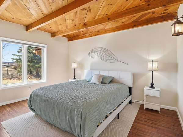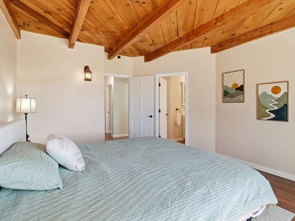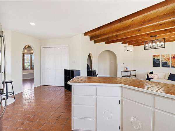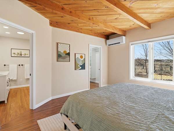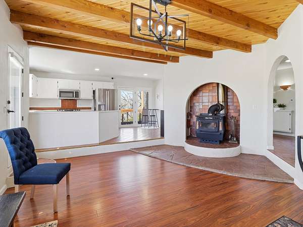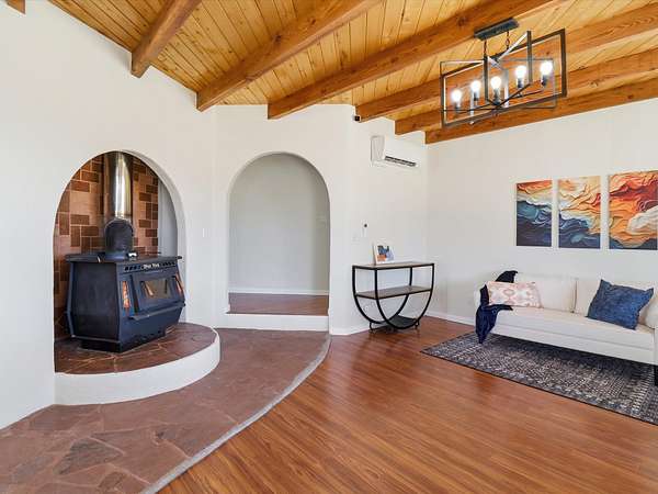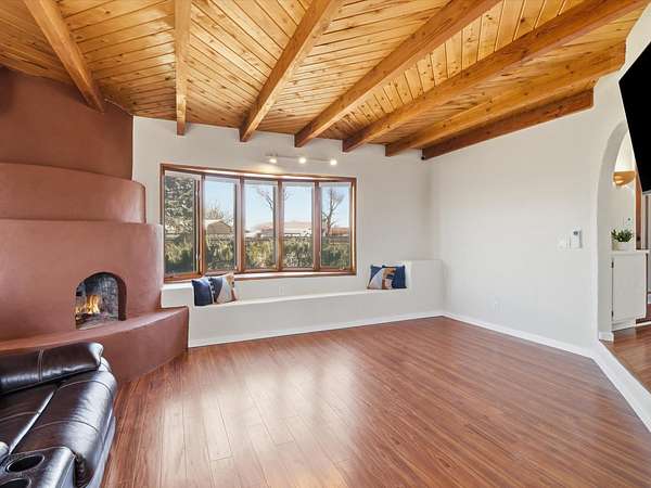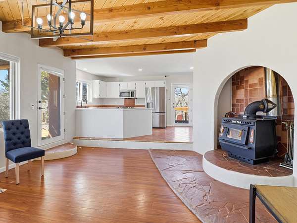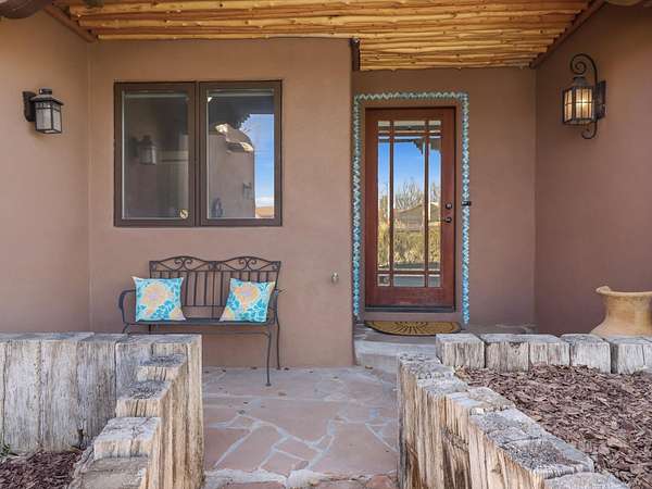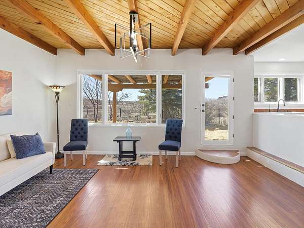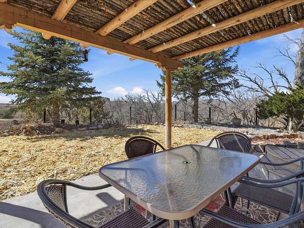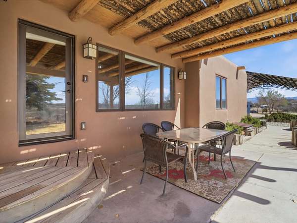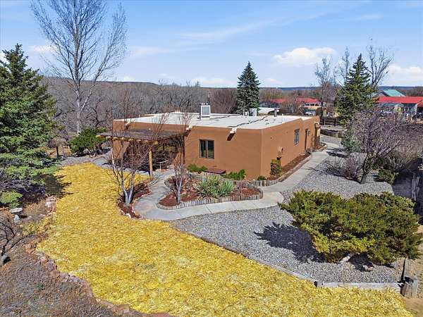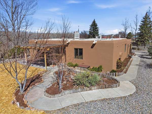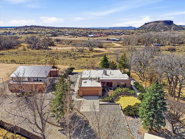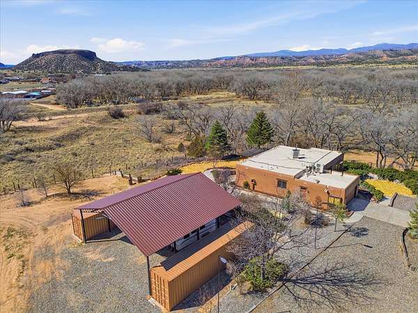 La Mesilla Retreat with Black Mesa Views! Maintained and thoughtfully updated, this peaceful La Mesilla retreat offers space, privacy, and stunning views of Black Mesa while backing directly to Pueblo land. Set on horse-friendly property, this home combines rural charm with convenient access to Los Alamos, Espanola, and Santa Fe. Inside, the home features 3 bedrooms and 2 updated bathrooms, along with newer laminate flooring throughout much of the living space. Two comfortable living areas showcase beautiful tongue-and-groove ceilings with exposed beams, creating warmth and character. There is a kiva fireplace in the main area and a Blaze King wood burning stove in the den. The primary bedroom continues the rustic charm with its own wood ceiling and beams. Major updates include a new TPO roof installed Winter of 2025 with a transferable warranty, new septic tank installed in the Fall of 2025, and Mitsubishi mini-split systems that provide efficient heating and cooling year-round. The outdoor space is ideal for those seeking room to spread out. Horse facilities include a stall with water and electricity, a chicken coop, and open space perfect for animals or gardening. Mature landscaping enhances the setting, while the property's position backing to Pueblo land provides privacy and uninterrupted views. For storage and functionality, the property includes two large 40' storage containers that bookend a 40' x 40' carport, plus an additional carport for extra vehicles or equipment. If you're looking for space, views, and a quiet setting with convenient access to Northern New Mexico's major communities, this La Mesilla property offers a unique opportunity to enjoy country living without sacrificing accessibility.