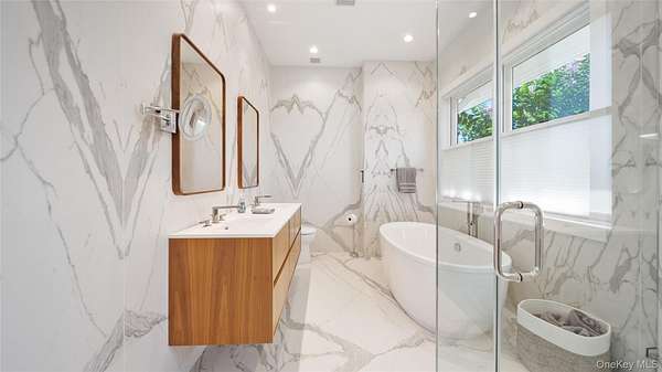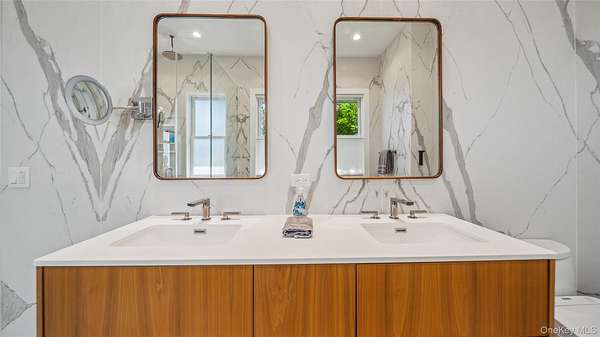 Welcome to 102 & 92 Dune Road, a uniquely designed 6,000 Square foot home, nestled in the heart of Westhampton Beach. This architectural masterpiece boasts 6 bedrooms and 6 bathrooms, each offering panoramic views of the surrounding Atlantic Ocean & Bay through expansive walls of glass. This residence offers a wealth of features that cater to modern, comfortable living with its innovative design and serene setting. Boasting a floor-to-ceiling gas fireplace, creating a warm and inviting atmosphere for relaxation or entertainment. The heart of the home is an open-concept kitchen, a pioneer design by First Dunes construction, featuring Gaggenau appliances. The main floor also offers a flexible space that could serve as a den or a junior primary suite, depending on your needs. Moving outside, the property extends its luxurious offerings with a detached pool cabana, perfect for summer gatherings or peaceful afternoons. The infinity edge heated pool, complete with a spa, offers an idyllic setting for relaxation and entertainment. Replete with private floating dock & bay access. The location of this home is second to none, with easy access to the ocean and proximity to village shops and dock, providing a perfect blend of convenience and tranquility. Welcome home where innovation meets luxury, and comfort meets style.