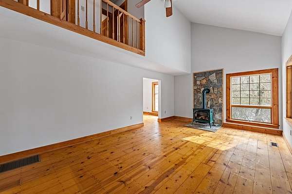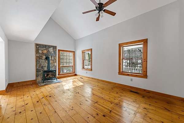 Set along a gently contoured shoreline, this private lakefront home offers the uncommon benefit of a smooth, easy walk from the residence to the water's edge. A floating dock permit is already secured, allowing effortless enjoyment of boating, swimming, and evening sunsets right from your backyard. Thoughtfully designed for everyday comfort and future flexibility, the home includes 3 bedrooms and 2 baths, highlighted by a generous main-level primary suite. Two additional bedrooms and a full bath upstairs provide ideal separation for guests or family members. The unfinished basement offers exceptional potential for expansion. With exterior access and natural light, the space is perfectly suited for an additional bedroom and bath, rec room, media lounge, or multipurpose living area--allowing the next owner to tailor the home to their needs. Inside, the architecture reflects a refined mountain-lake aesthetic. The great room features soaring vaulted ceilings, a wood-burning stove fireplace, hardwood floors, and expansive windows that capture natural light and frame the surrounding landscape. The combination of wood accents and smooth drywall finishes creates a balanced design--warm, inviting, and well-suited for either full-time living or a second-home retreat. Recent improvements add to the home's appeal, including freshly updated kitchen cabinetry, modernized fixtures, new bathroom vanities, and new tile in the baths--offering a move-in-ready interior with opportunities to further personalize. Outdoor living is equally inviting. A broad covered front porch provides a comfortable place to relax, while the spacious rear deck is ideal for entertaining or dining with a peaceful lake backdrop. A dedicated outdoor storage shed offers a practical space for tools, lake equipment, or seasonal storage. With paved access and a convenient location between Blairsville and Blue Ridge, the property offers a rare combination of privacy and accessibility.