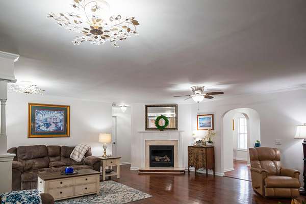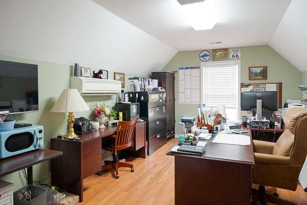 Set on over 5 private level acres with no HOA, this beautifully crafted 3,000 sq ft home offers refined living paired with unmatched functionality. Built in 2005 and completed in 2006, the home showcases hardwood and tile floors throughout the main living areas, elegant crown molding, and timeless finishes designed for both comfort and style. The primary bathroom has been recently remodeled, creating a spa-like retreat, while major systems have been thoughtfully updated, including a newer tankless water heater and a furnace just 4 years old. Outdoor living is elevated with Trex decking, a spacious screened-in porch, and a hot tub that conveys, perfect for relaxing while overlooking the peaceful acreage. A concrete driveway and sidewalk enhance the home's polished curb appeal. An exceptional feature of this property is the 40x60 fully insulated shop, equipped with two 12x12 remote-controlled doors, 200-amp service, and heat and air, ideal for luxury vehicle storage, business use, or serious hobbyists. The shop includes a 12x60 lean-to, plus an additional separate 16x60 covered area designed to accommodate a fifth-wheel or camper with ease. Offering privacy, space, and versatility rarely found together, this estate delivers luxury living without compromise. Agent is related to owner.