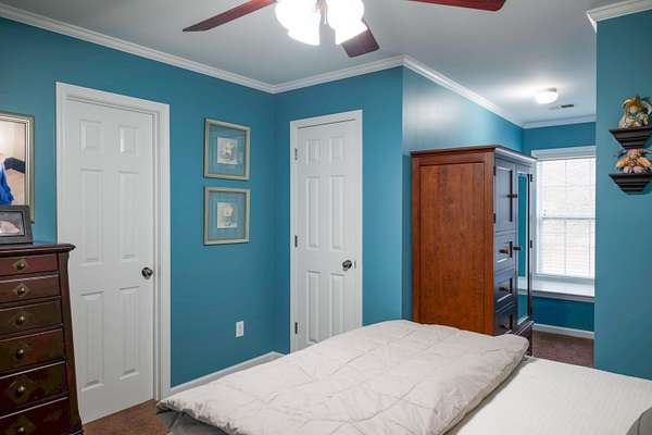 - Bedroom On 1 st Floor, Cable Available, Ceiling Fan(s), Eat-In Kitchen, Hot Tub, Kitchen Island, Pantry, Primary Downstairs, Solid Surface Counters, Walk-In Closet(s)