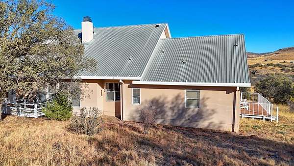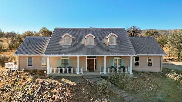 Est $3,280/mo3BR/2BA stucco home on 5.58 acres with 2,383 sq ft and captivating mountain views. Conveniently located, the home features an open floor plan with stained concrete floors, wood beam accents, and a two-sided rock-faced gas fireplace. The kitchen offers granite countertops, stainless steel appliances, and both formal and informal dining. Sequestered primary suite includes dual vanities, soaking tub, separate shower, walk-in closet, and private deck. 2 car garage, observatory, and storage shed.
