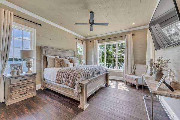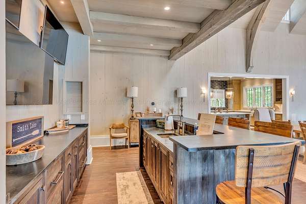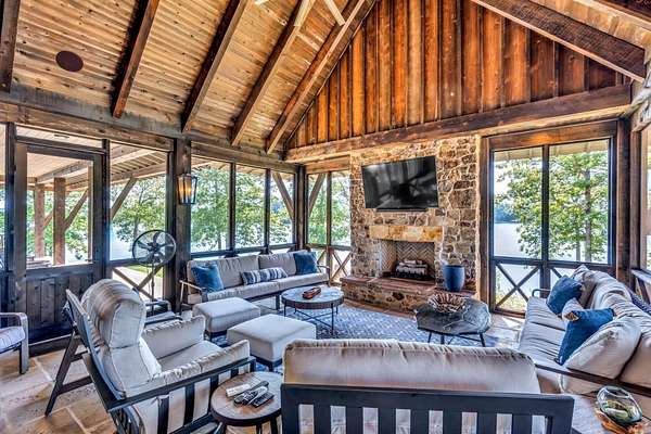 Est $18,675/moSmith Lake (Main Channel) An exquisite well designed single level estate! Six bedrooms each with en suite baths. This is the definition of a true family luxury lake home. Lots like this are almost unheard of. In fact, the owners purchased two lots to combine this magnificent piece of real estate into one parcel. Enjoy a large aluminum dock tucked away in the cove.