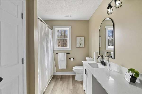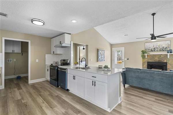 Welcome to 102 Discovery Bay in Milledgeville, GA - a beautifully renovated home located in a desirable lake community near Lake Sinclair. Completely updated from top to bottom, this move-in ready property features new flooring, fresh paint, modern fixtures, and stunning quartz countertops throughout. The open floor plan creates an easy flow for everyday living and entertaining, highlighted by a spacious fireside family room that feels both inviting and functional. The kitchen shines with its new quartz surfaces and updated finishes, offering a clean, modern feel that today's buyers want. The owner's suite has been thoughtfully refreshed with a quartz vanity and a brand-new tiled shower, creating a comfortable and stylish retreat. Durable, low-maintenance LVP flooring runs throughout the home, combining practicality with contemporary design. Situated on a large, level 1.4-acre lot, the property offers plenty of room to enjoy outdoor living, while the rear-entry two-car garage enhances curb appeal and convenience. Located less than half a mile from Lake Sinclair, this home provides easy access to boating, fishing, and lakeside recreation while still offering privacy and space. If you've been looking for a fully updated home with land and lake access nearby, this one delivers.