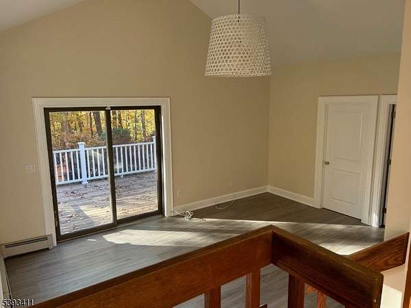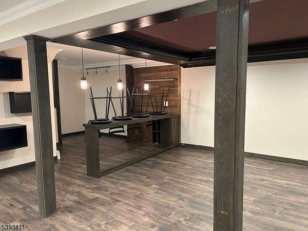 Nestled on a private, wooded lot, this beautiful custom home offers space, comfort and style throughout. The main level features a formal living room and dining room accented with elegant custom molding. The eat-in kitchen boasts granite countertops, stainless steel appliances and plenty of cabinetry for storage. From the kitchen, step down into a cozy family room with a vaulted ceiling and sliding doors leading to a large wraparound deck - perfect for relaxing or entertaining outdoors. An updated powder room, laundry room and convenient garage access complete this level. Upstairs, the primary suite offers a spacious walk-in closet and ensuite bathroom. Three additional bedrooms and beautifully updated main bathroom provide plenty of room for all. The finished basement includes a built-in bar and versatile space ideal for a home office, gym or recreation area. Outside, enjoy the private fenced backyard, complete with a patio and above -ground pool - the perfect setting for summer fun and quiet relaxation.