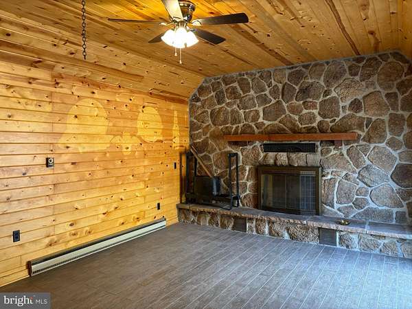 WOW... A brick rancher and commercial garage at an incredibly reduced price!!! This is like finding a diamond in the coal mine... a rare one.. and it's on LEVEL GROUND in WV! To make it even better, it has road frontage, a stream and backs to trees, its only 450' off the main road through Burlington-not to mention all the walnut trees in the front yard. There is potential for a THIRD BEDROOM by converting the family room-just imagine, a master bedroom with a wood burning fireplace, and a private entrance to the back patio. All you need to do is add a closet at one end and there is plenty of room for just that! Keep reading - there's even more. The double door entry of this brick rancher brings you into an open floorplan and showcases the lovely laminate flooring that runs throughout most of the home. Don't forget to look up - the owner has updated all of the lighting and installed ceiling fans in almost every room. Need some place to store your stuff? This home has several large closets-even the laundry room has extra shelving. When you enter the master bedroom, there is a barn door that will capture your attention. And behind it...an on suite bathroom with a custom tile shower. Then there is the family room just off the kitchen - the wood burning fireplace makes it feel comfy and cozy and the sliding glass doors make it easy to access the outdoor entertaining space. This home has an oversized concrete patio area that is landscaped, offers privacy, and is even wired for a hot tub under the pergola! Oh yeah, let me mention this again...it has a FLAT yard - in the front, both sides, and behind the home. We are just getting started. Across the driveway sits a 40' x 50' garage (formally used as a commercial garage business) that includes features like two 10' overhead garage doors, concrete floor, half bath, window a/c, electric heat, stainless steel flue for a wood burner, 5 ton mid lift, 5 ton post lift, an additional side garage running the length of the entire garage. Convenient, separately metered electric from the home and its own septic system, makes this a worthwhile investment plus there is a second story above the garage with a designated, private entrance, partially wired and waiting to be finished. The home and detached garage are on same public water meter. There is a well behind the home that was disconnected with the public water was connected.