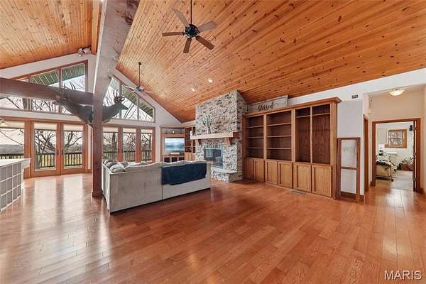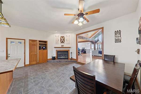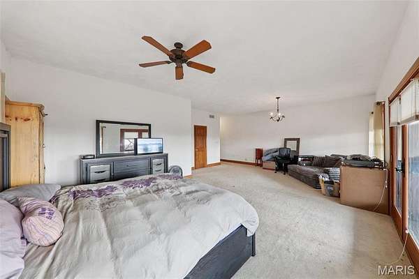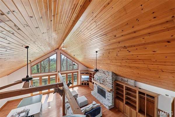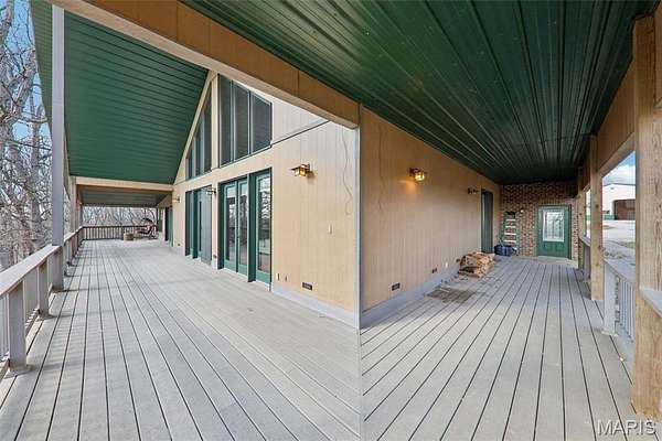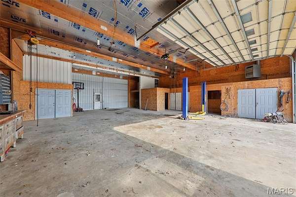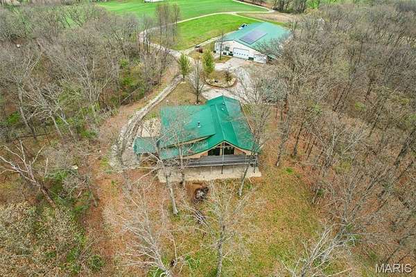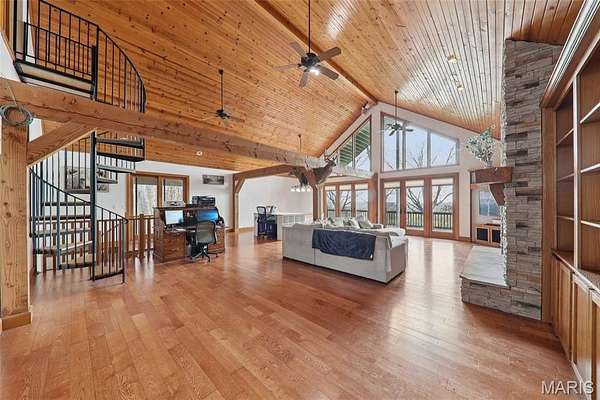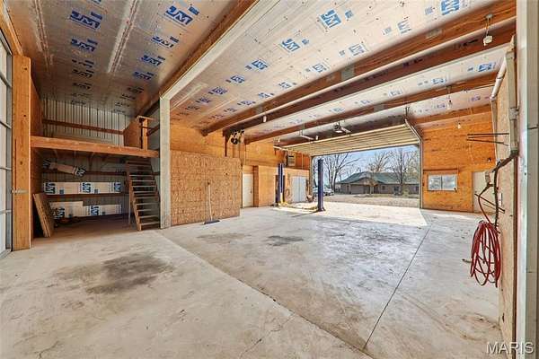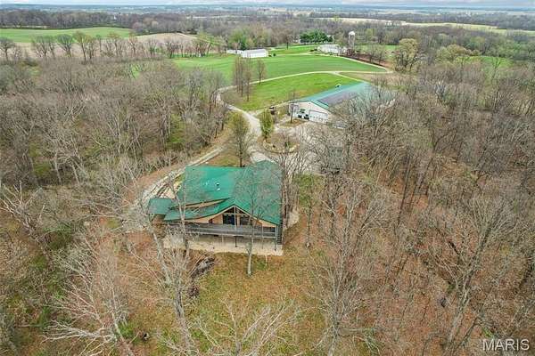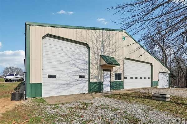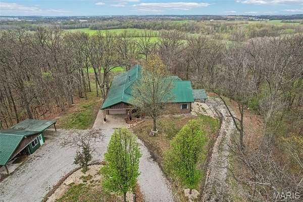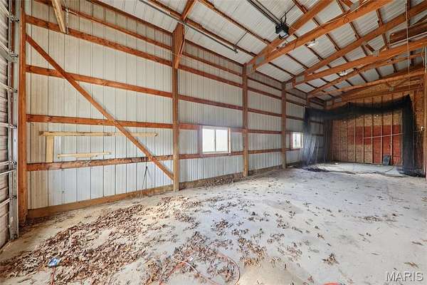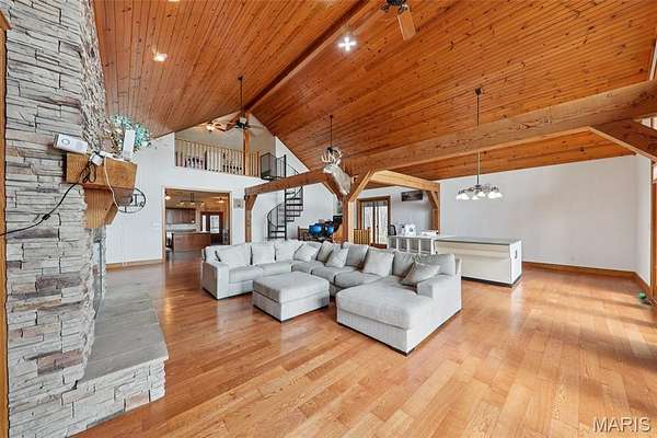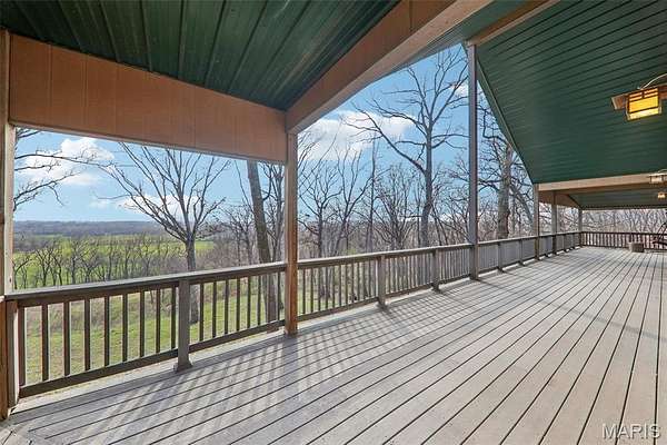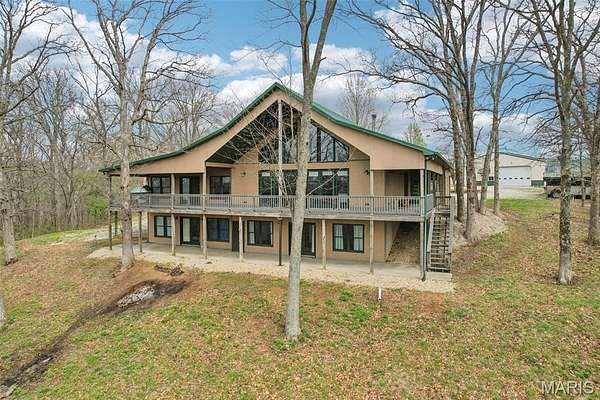 Some properties are just real estate. This one is a legacy. Set on 9.73 acres of timber, pasture, and cropland in the rolling hills of Fayette County, 102 E 725 Ave in Mulberry Grove is the kind of place people spend their whole lives looking for. About an hour from downtown St. Louis, 45 minutes from Scott Air Force Base, and less than 30 minutes from Carlyle Lake, this property puts you close enough to everything while feeling like you're a world away. Step out of the master suite and onto the deck with your morning coffee, and the entire Fayette County countryside opens up in front of you, green fields, timber edges, and a horizon that goes on forever. The suite itself is a genuine retreat: 442 sq ft with a soaking tub, double vanity, separate shower, and that walkout deck view every single morning. Inside, the main level spans approximately 3,188 sq ft built for real life. Soaring tongue-and-groove cathedral ceilings anchor the great room, where a floor-to-ceiling stone fireplace, rich hardwood floors, and a spiral staircase winding to the loft create something that feels like a high-end lodge and a forever home all at once. The kitchen carries the same craftsmanship, a center island, fireplace, and stainless steel appliances tells you exactly how this home was built. A dedicated office, breakfast nook, mudroom, laundry, and an additional bedroom and bath round out a floor plan designed for how people actually live. The loft above is the perfect reading nook or overflow sleeping space for those big weekend gatherings. Downstairs, the story gets even better. Approximately 1,110 sq ft of finished walkout basement brings total living space to roughly 4,300 sq ft, complete with a full kitchen, two bedrooms, a full bath, and a massive living area that functions as fully self-contained quarters for guests, extended family, or in-laws. A covered patio stretches nearly 57 feet across the back of the lower level, giving you another outdoor living space that looks out over the property. The infrastructure here sets this place apart from everything else on the market. An 80x140 ft pole barn, over 11,000 sq ft, part of it is insulated, features a two-post vehicle lift, and even has a batting cage built inside. Part of this building currently operates as a boat storage business generating $3,000 per year in rental income. Keep the income, expand the operation, or simply store every toy you own, this building alone changes the equation. A second 12x24 outbuilding with a dog kennel rounds out the setup for the serious outdoorsman. With grain bins on site, permanent pasture, cropland already in the ground, and plenty of room for horses, this property is ready for the homesteader who's been waiting for the right setup. The soil is here. The infrastructure is here. The land is here. You just bring the vision. And the wildlife. The trail cameras tell the story better than any listing ever could, monster velvet bucks in the summer heat, nocturnal giants slipping through the timber after dark. This land grows and holds quality whitetails season after season. Less than 30 minutes from Carlyle Lake means world-class fishing, boating, and waterfowl hunting are practically in your backyard. 4,300 sq ft of finished living space. 9.73 acres. Over 11,000 sq ft of barn. Income producing. Hunter's paradise. Homesteader's dream. Less than an hour from St. Louis. This is the kind of property you buy and never sell. The kind you pass down. Be the one who starts the story here. Lot lines are estimated in the photos.