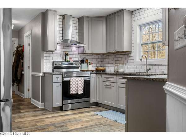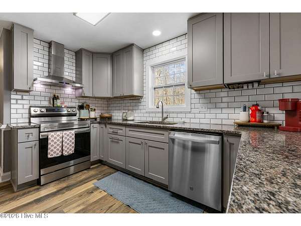 - Dishwasher, Electric Oven, Refrigerator, Vented Exhaust Fan
