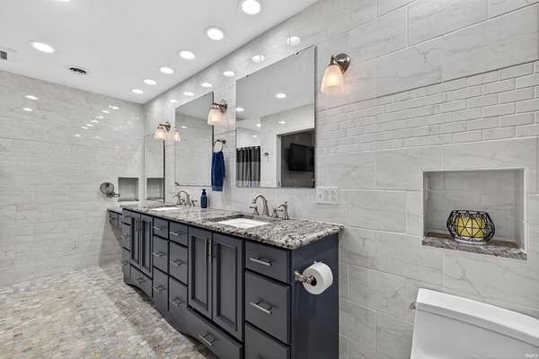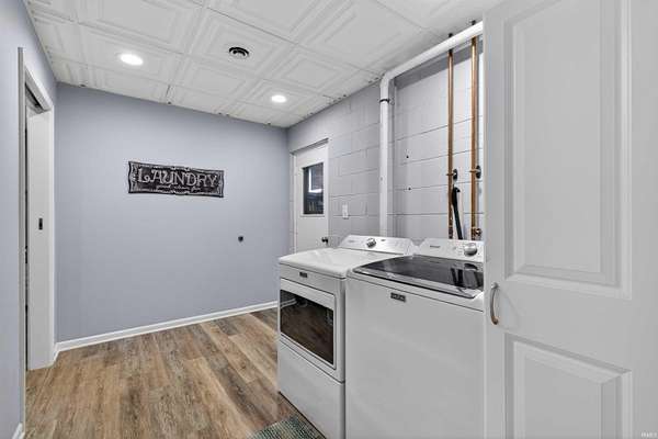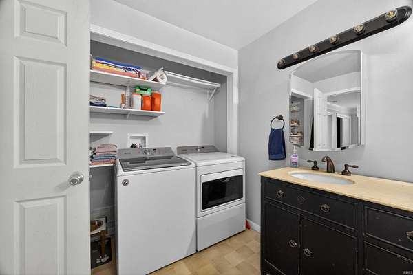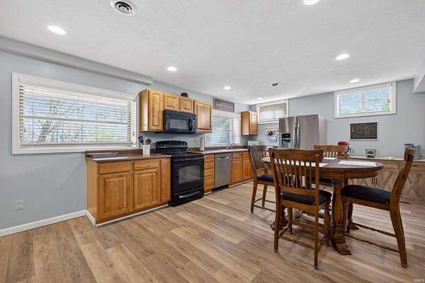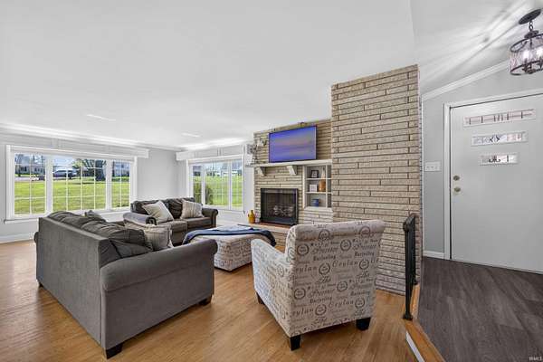 MODERN. FUNCTIONAL. STYLISH. This beautiful FOUR bedroom, FOUR bathroom mid-century modern home is full of charm and set on 5.39 acres, offering space, style, and flexibility for a variety of living needs. As you enter, you are welcomed by a spacious living area highlighted by striking limestone fireplaces, creating a warm and inviting setting. The formal dining room offers ample space for gatherings, making it ideal for hosting family and friends. The home is thoughtfully designed with two kitchens, two living areas, and a primary suite on each level, along with laundry on both levels for added convenience. The basement primary suite features its own private laundry room, providing excellent flexibility for guests or multi-generational living. The walkout basement adds even more versatility, complete with both an electric fireplace and a wood-burning fireplace, enhancing the comfort and ambiance of the space. Large windows throughout the home showcase beautiful views in every season, filling the interior with natural light and connecting you to the surrounding landscape. The property has seen several updates in the last five years, including a basement waterproofing system installed in 2025 and new vinyl plank flooring in the basement, also completed in 2025. The gutters were replaced with leaf guards in 2025. Additional improvements include a new compressor coil, capacitor, disconnect, and Freon for the AC unit. The upstairs bedrooms feature new ceiling fans, and a new kitchen light fixture has been installed upstairs. The home also includes new solar light chimney additions, a new electric fireplace in the basement, and fresh paint throughout the upstairs. Home comes complete with kitchen appliances, two washers, two dryers, an HSA home warranty with a seven star buyer upgrade, and has the possibility of qualifying for 100% USDA financing. Utilities are provided by: Duke, Centerpoint, and Bedford City Utilities. This one-of-a-kind property blends modern updates with timeless mid-century character, offering a unique and inviting place to call home.