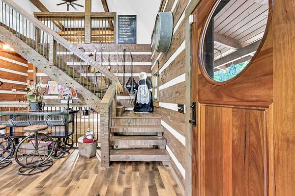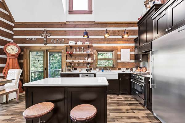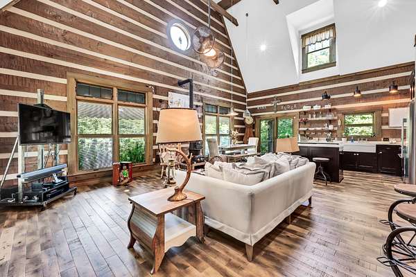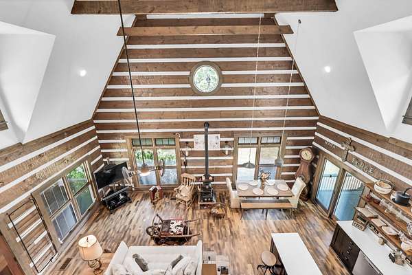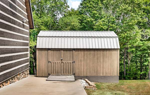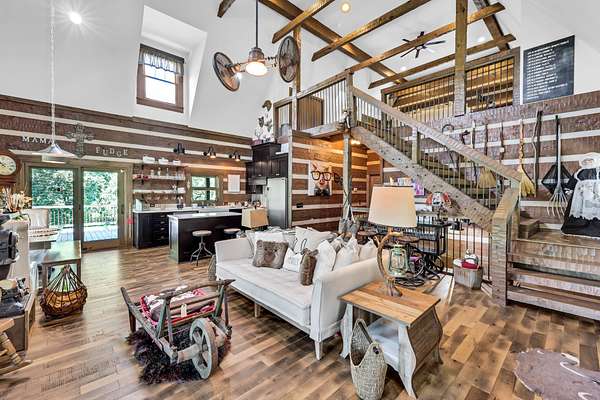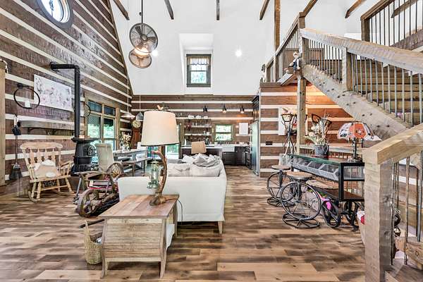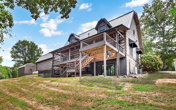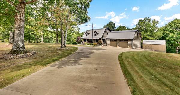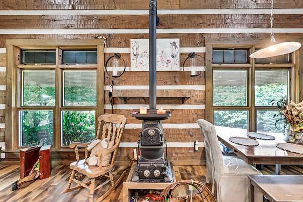 Escape to your own slice of Tennessee paradise with this stunning custom built log home! Nestled on 4.820acres of peaceful wooded land, this 4bedroom 2.5 bath, home blends rustic charm with modern comfort. Step inside to find soaring vaulted ceilings, exposed beams, and a cozy propane burning potbelly stove, that creates a warm mountain-cabin feel. This property features: high-end appliances, solid wood interior doors, real hardwood floors, metal roof, real brick flooring, large pantry Pella windows & slider doors with internal blinds, Pella solid wood mahogany entrance door, Douglas fir 6x12 hand hewn logs, custom light fixtures . 1900's original antique refurbished train pot belly stove, built to last for generations. Oversized, custom cedar faced Garage Doors with LIFTMASTER openers, Generac back up generator, custom cloth awnings! The open floor plan flows seamlessly into a spacious kitchen featuring custom cabinetry, stainless appliances, and plenty of room for entertaining.
