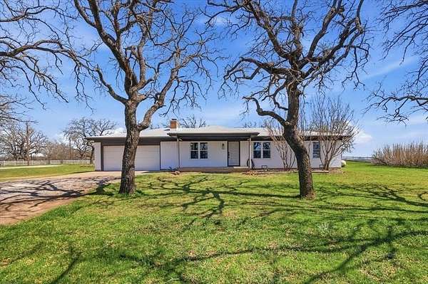 Looking for space, privacy, and the freedom of country living without giving up convenience? This beautifully remodeled 3-bedroom, 2-bath home sits on 2.09 acres just outside the Weatherford city limits — and best of all, there’s no HOA, no restrictions, and no city taxes. The newly remodeled, fresh, modern interior includes luxury vinyl plank flooring, stylish designer lighting, and a warm living room centered around a fireplace with custom built-ins. The kitchen is a standout feature with shaker cabinets, stainless appliances, and a farmhouse sink that overlooks the property. This property really shines on the outside with mature oak trees throughout the acreage, a long gravel drive leading to the home, and metal fencing surrounding the entire property. Whether you're looking for space for horses, a hobby setup, RV parking, or just room to breathe, this property offers endless possibilities. Recent upgrades include PEX plumbing, new windows, and a water filtration system. Refrigerator, washer and dryer all convey with property. Peaceful country living with room to grow — all just minutes from town. Please see the Transaction Desk or contact listing agent for a complete list of upgrades and features.