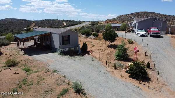 Escape to cooler weather with 2 homes situated on a end street 3.37 usable acres in Northern AZ!Conveniently located between Phoenix & Prescott this almost new property features two 2023 homes for the price of one!With 1,044 sqft 3 bed/2 bath double-wide & a 624 sqft 2 bed/1 bath single wide you can have an amazing setup for income producing or multifamily living!Both include dual pane windows,luxury vinyl flooring,faux wood blinds & most appliances are included!10X20 shed with roll up garage door,private well & full drip irrigation system for your homesteading dreams!Enjoy already planted fruit trees, roses, junipers & more!This garden is ready for your imagination to add on!No HOA here bring all your RV's & toys & enjoy rural living at it's finest but,still be close enough to it all!