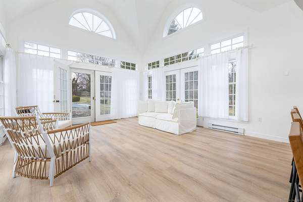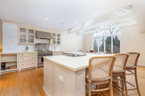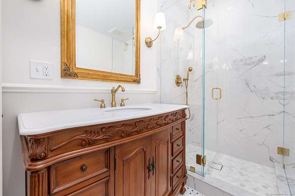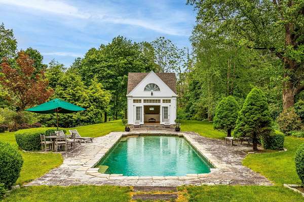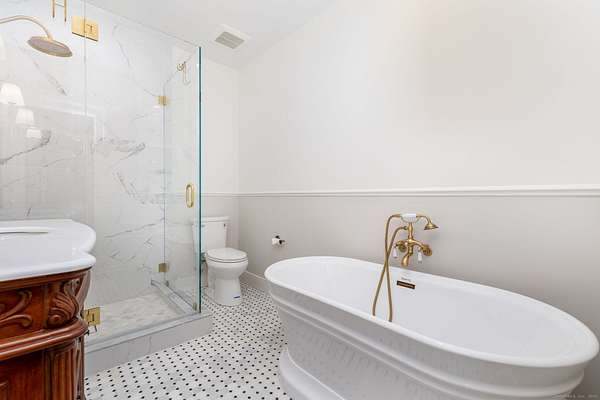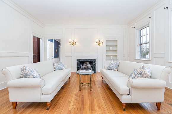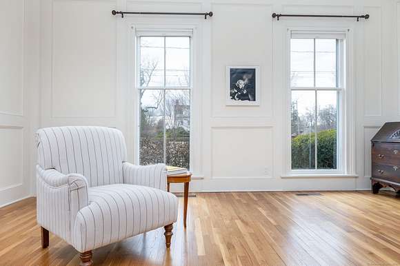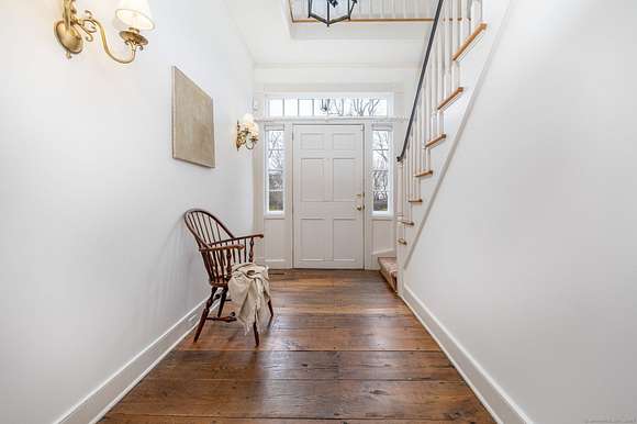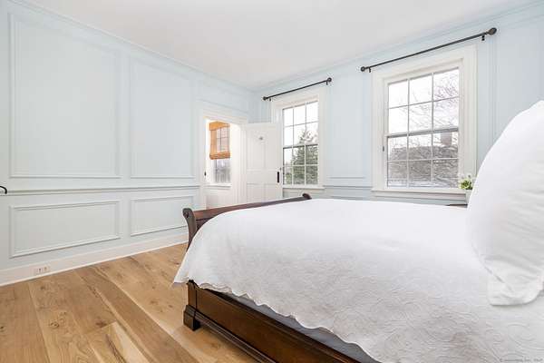 Step into the pages of history with the beautifully revitalized Col. Charles Webb house, circa 1830, a centerpiece of Litchfield's storied past. This iconic residence has been thoughtfully updated, blending classic elegance with modern amenities. As you enter through the entryway, you are greeted by the warmth of wide board flooring and an inviting arched doorway. The journey continues to a convenient wet bar and into the sunlit formal living room, where a wood-burning fireplace, built-in cabinets and polished hardwood flooring create an atmosphere of timeless charm. The formal dining room, with another wood-burning fireplace, offers ample storage and two closets. The great room is a marvel of architectural design, featuring a soaring ceiling, elegant French doors and luminous Palladian windows that invite the outside in. Culinary enthusiasts will revel in the chef's kitchen, boasting a gas range, dual new dishwashers, a Subzero refrigerator, a breakfast bar and a cozy dining area. A versatile mud/playroom and a half bath complete the main level's offerings. Ascend to the upper level, where the primary bedroom suite has been freshly painted and adorned with new oak floors and custom molding, creating a serene escape. The en-suite primary bath has been transformed with a new custom shower and linen closet. Two additional guest bedrooms (one en-suite) have undergone complete renovations, featuring new oak flooring, fresh paint and remodeled
