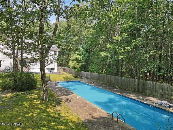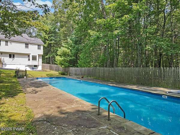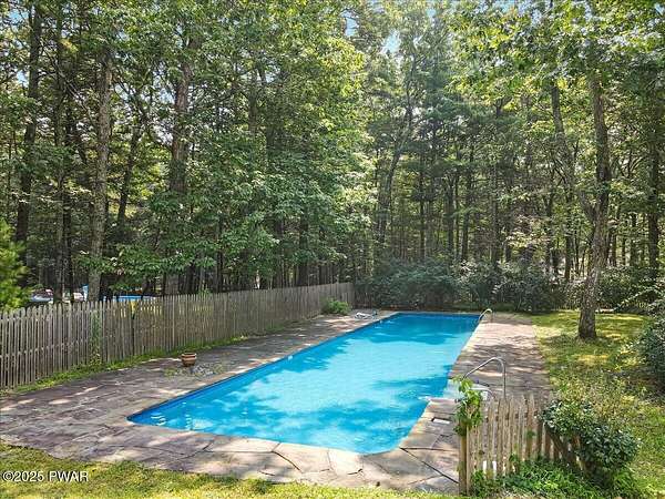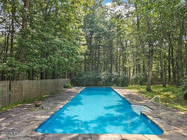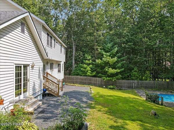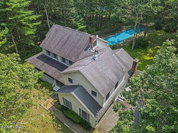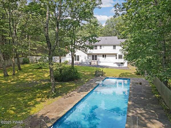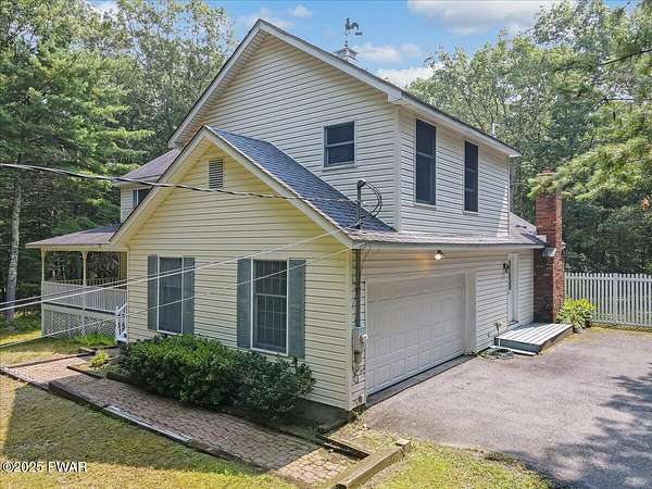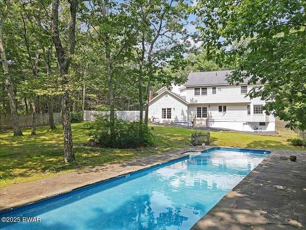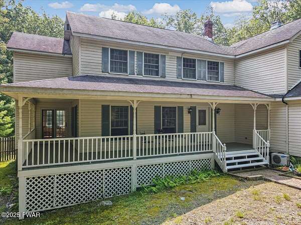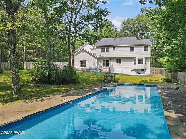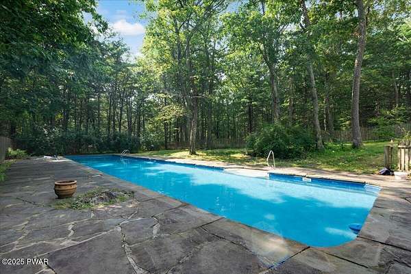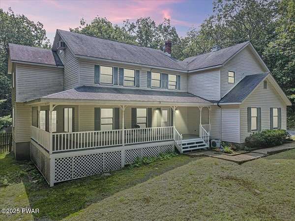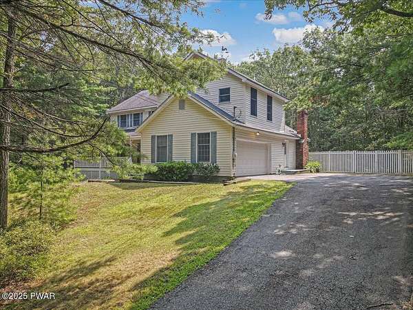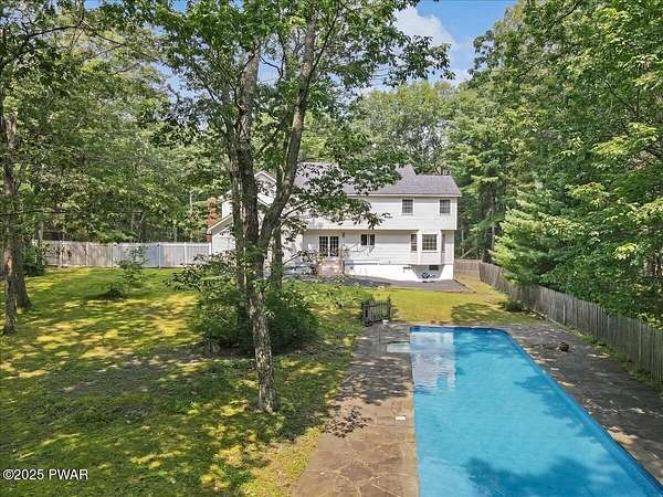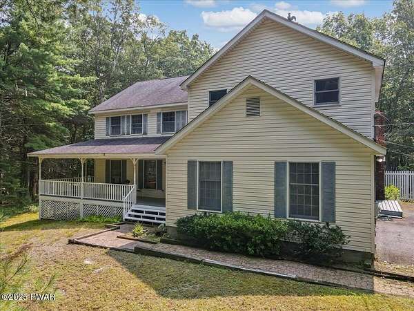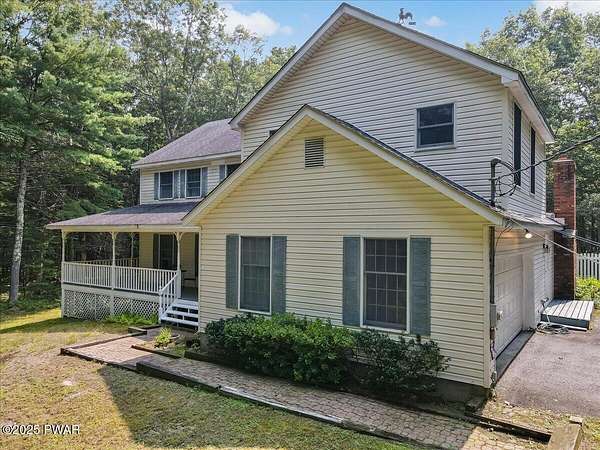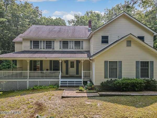 Crawford Hill Community, a desirable location in Milford, PA and Delaware Valley School District on 2.5 Acres of wooded land! This beautiful 2-story colonial style home features 3 bedrooms including a primary bedroom and an additional ensuite plus an office and a finished attic that could be used for a multitude of uses including a gaming room, craft room and so much more! The main level offers a great room with an eat-in kitchen and family room area with a brick wood burning fireplace, hard wood floors and doors to the patio overlooking the built-in pool area. A formal dining area and formal living room are also on the main floor. An unfinished lower level provides future expansion of additional living space. A 2-car garage, covered front porch and paved driveway complete this country property!