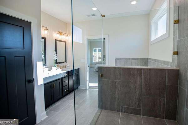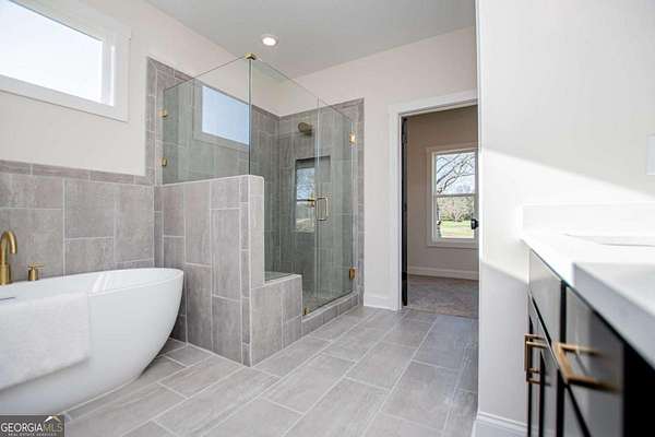 - Beamed Ceilings, Double Vanity, High Ceilings, Master On Main Level, Soaking Tub, Tile Bath, Tray Ceiling(s), Vaulted Ceiling(s), Walk-In Closet(s)