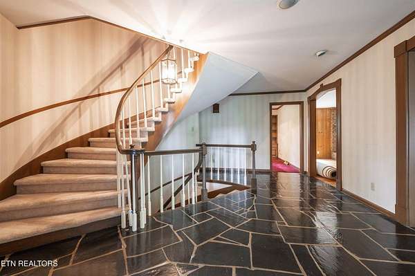 Discover a rare gem in the heart of Clinton, TN! A stunning classic brick home that blends old world craftsmanship with spacious design and timeless appeal. Built in 1970, this 4 bedroom, 4.5 bathroom residence sits on a beautiful private lot with a long, graceful driveway that leads to a rear entry garage offering both curb appeal and convenience. Step inside the grand double front doors and be greeted by a dramatic foyer featuring a sweeping, curved staircase, a true architectural centerpiece. The layout flows easily through a series of elegant spaces, including a large living room perfect for entertaining, a formal dining room for special gatherings, a cozy den for relaxing evenings and a dedicated office ideal for working from home. At the heart of the home lies a spacious kitchen with custom cabinetry, a large center island and a sunny eat in area overlooking the private backyard. Downstairs you will find more room for entertaining or recreation equipped with a pool table, kitchenette and an additional bathroom. They truly don't build homes like this anymore. From the thoughtful layout to the solid construction and beautiful setting, 102 Redbud Drive is a rare opportunity to own a home of this caliber. This home offers tremendous potential for the right buyer. While it has been lovingly maintained over the years, it is in need of some repairs and cosmetic updates to restore it to its full glory. This property is being sold ''as is'' as it is part of an estate.