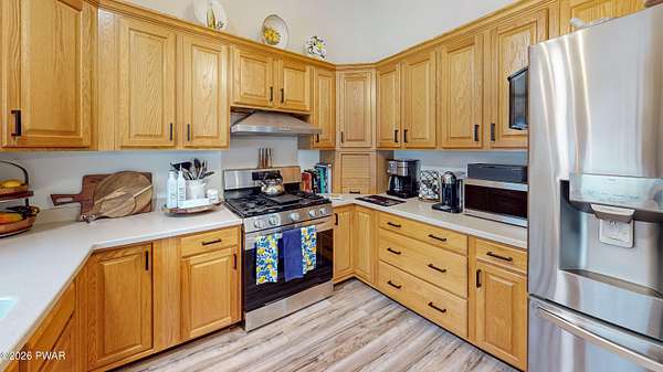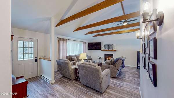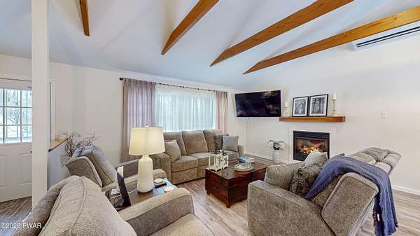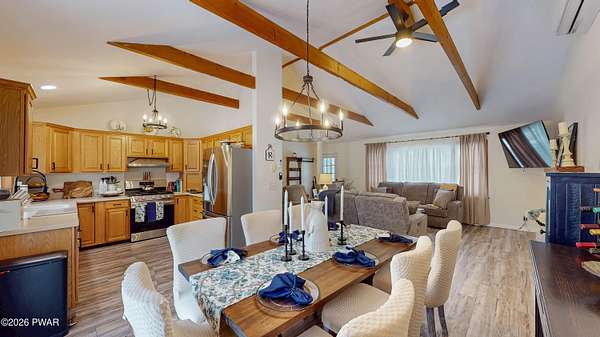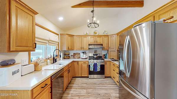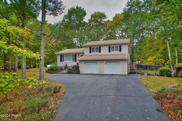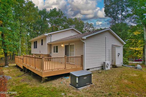Welcome Home! 102 Sprint Court is a charming three-bedroom, two-bath split-level home located in the desirable Sunrise Lakes community. With the additional lot included, this home has over 2 acres of land. Step inside and enjoy the array of modern features and stylish updates. The main level features an airy feel with vaulted ceilings and new luxury vinyl plank (LVP) flooring that flows seamlessly throughout. The kitchen is equipped with Corian countertops, lots of cabinets for storage and new stainless steel appliances. Both bathrooms have been tastefully updated, adding to the home's overall appeal. Newly installed split units provide both heating and cooling for year-round comfort. Upstairs, the hardwood floors flow through all the bedrooms. The generously sized primary bedroom features an en suite bathroom and double closets. The second and third bedrooms are spacious with large closets for storage. The inviting lower level includes a cozy living space enhanced by a new pellet stove and slider doors to a fenced in area with flower beds, beautiful stonework and a serene Koi pond. Slider doors off the dining area lets you enjoy outdoor gatherings on the expansive Trex decking that runs along the back side of the home. Additional features include beautiful stonework on the front entrance, an insulated crawl space, a two-car garage, two sheds for extra storage, and a whole-house generator for peace of mind. This home is not just a place to live; it's a lifestyle, blending modern amenities with inviting spaces for comfort and tranquility in every corner. Don't miss your chance to make this exceptional property your new home!