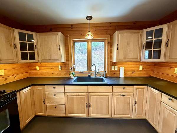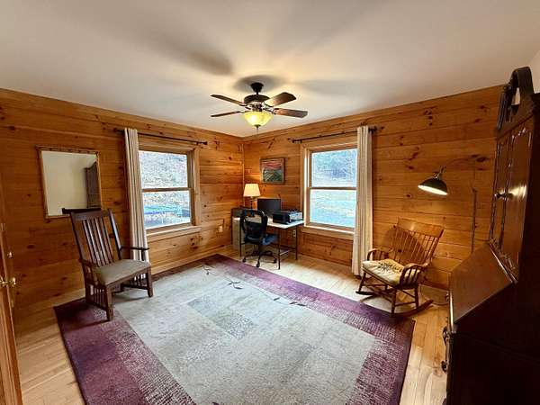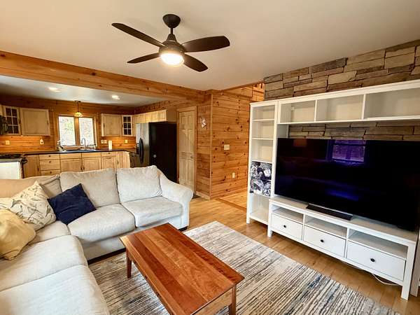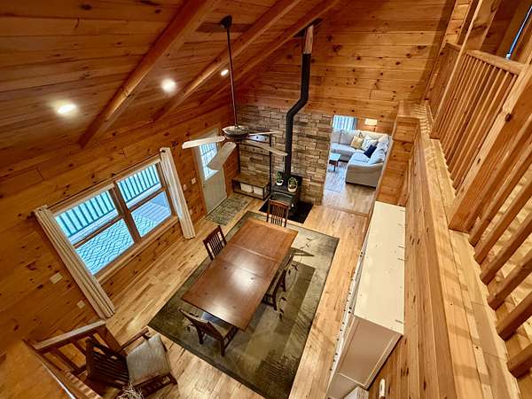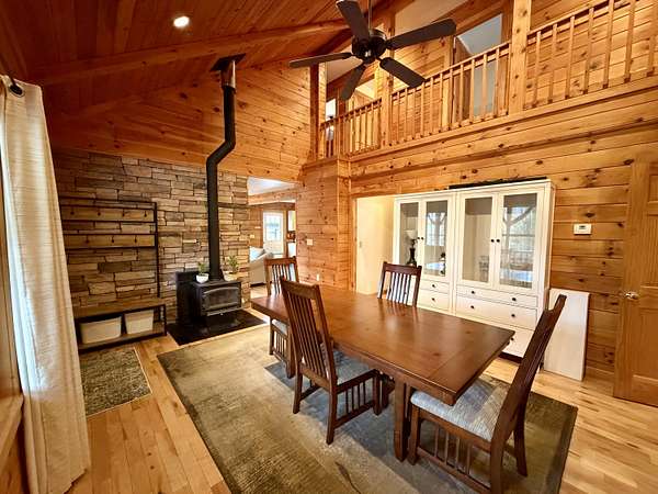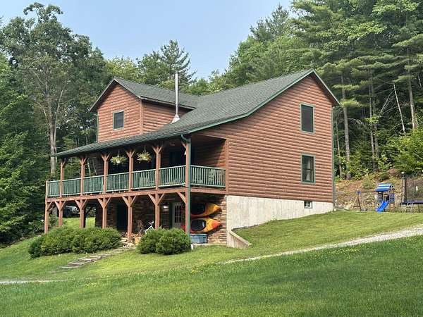 WELCOME HOME! This charming Adirondack-style home with log siding set on 10+ acres in a peaceful country setting with particle views of Terry Mountain. This 4-bedroom, 2-bath property offers a blend of rustic character and modern efficiency. The interior features knotty pine on perimeter walls, complemented by hardwood and tile flooring throughout. The kitchen is equipped with maple cabinetry, PaperStone countertops, and slate-looking wood floors, while the dining room showcases a cathedral ceiling and a cozy hearth with woodstove--perfect for supplementing the in-floor radiant heat system. Additional highlights include an oversized 2-car detached garage with remotes, storage shed, and an automatic backup generator for peace of mind. The walk-out basement is partially framed and ready for finishing, offering excellent potential for additional living space such as a family room, home office or 5th bedroom, full bath, and laundry area. Recent updates include some freshly painted rooms, a new Rinnai heater (Dec 2025), new hot water tank (Nov 2025), and electrical upgrades. Two 5+ acre parcels being sold as one property providing privacy ID#'s 265.-1-11.3 and 265.-1-11.2. Located in the Adirondack Park (rural use). Call to schedule a tour today!