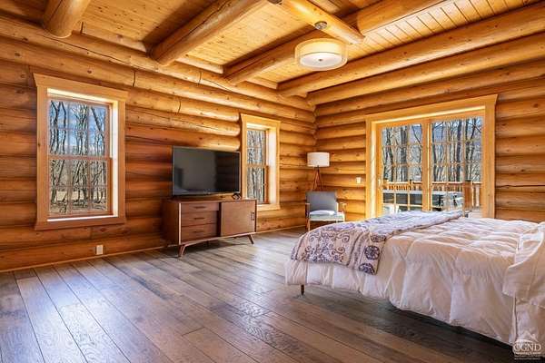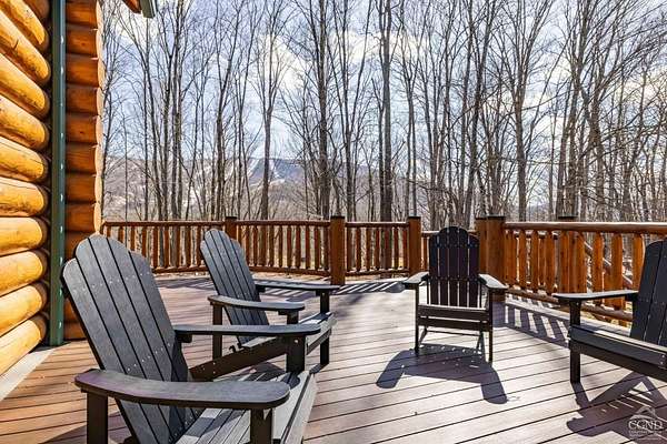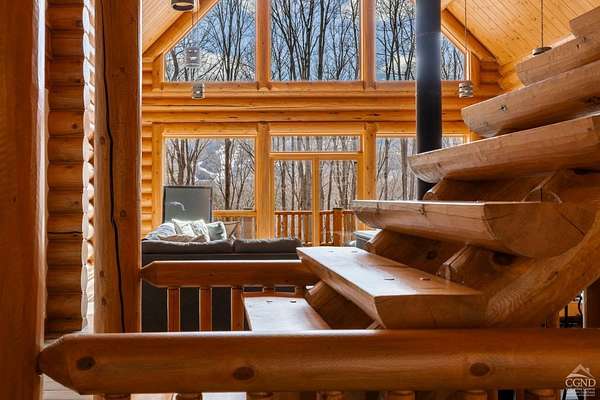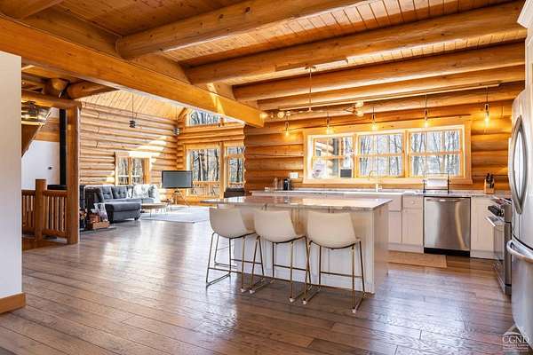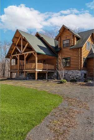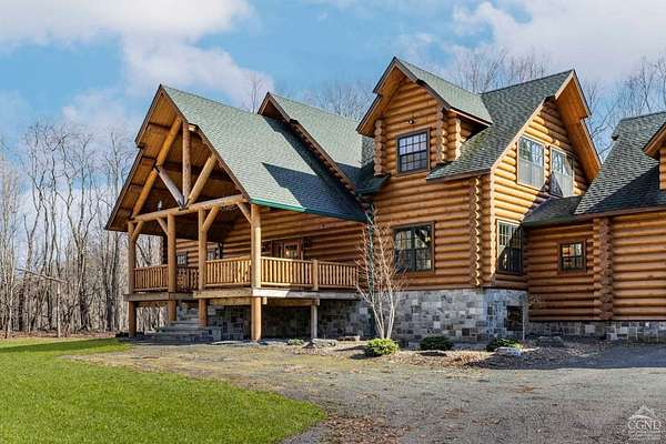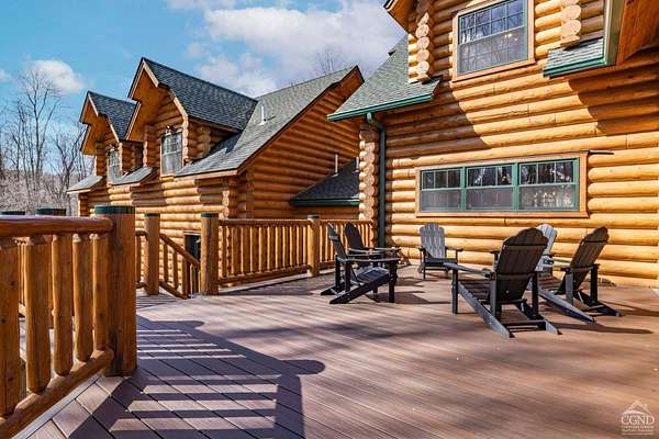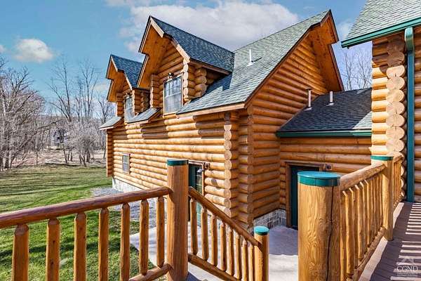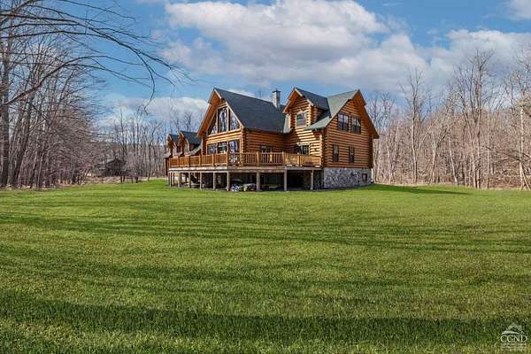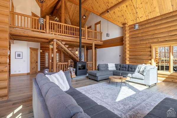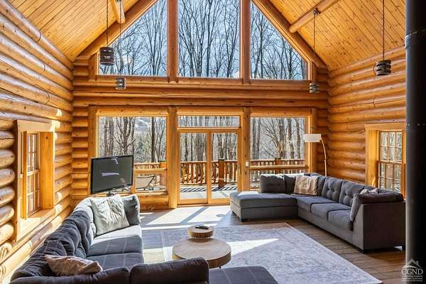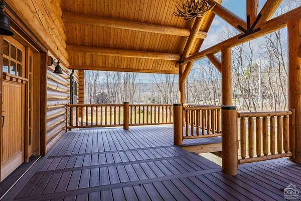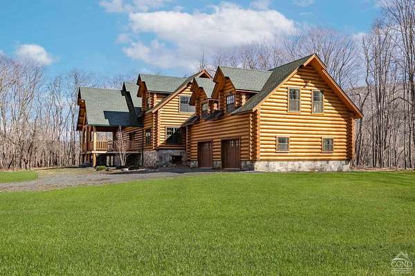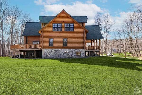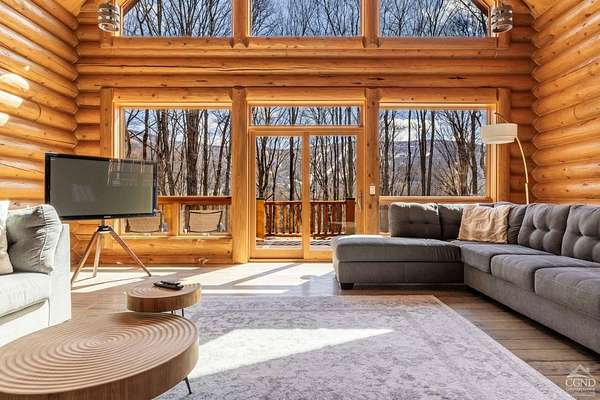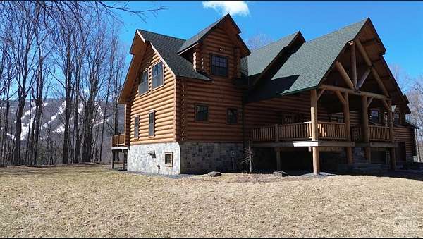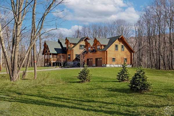 Custom Log Cabin with Modern Finishes, The Feel of a New Build, and Stunning Mountain Views- Nestled on nearly 2 acres, this breathtaking custom log cabin combines luxury, charm, and nature. Built with meticulous attention to detail, the home shows as if it is new construction, exuding a fresh and pristine feel throughout, making it indistinguishable from a brand-new build. With 5 bedrooms, 3.5 bathrooms, and a versatile accessory apartment above a heated 2-car garage, this home offers space, comfort, and endless possibilities. Overlooking Windham Mountain ski slopes, with views from almost every inch of the home, it's perfect for relaxation, gatherings, or as a premium rental investment. The open floorplan features gleaming wood floors and a wall of floor-to-ceiling windows that flood the home with natural light. The living room boasts soaring vaulted ceilings, a cozy wood-burning stove, and seamless access to an expansive wraparound deck, perfect for indoor-outdoor living. The chef's kitchen includes a farm sink, granite countertops, stainless steel appliances featuring a Thor range/oven and modern light fixtures, flowing into a welcoming dining area.The first-floor primary suite is a private retreat tucked behind barn doors, with a luxurious spa-like bathroom including a tiled walk-in shower, a soaking tub, a walk-in closet, and private deck access to a hot tub. Upstairs, the home offers three additional bedrooms, a bathroom, and a loft currently used as a game room but could also serve as the perfect home office. A laundry/mudroom connects the garage and main house. Above the oversized garage, the chic studio apartment features vaulted ceilings, wood floors, cable railing, stainless steel appliances, and a custom bathroom with a soaking tub perfect for guests or as a rental income opportunity with its own private entrance. Outside, relax in the hot tub on the deck while enjoying the incredible mountain views. The property includes a half-moon driveway, covered front porch, and a spacious basement that has been set up with the intention of future completion. Located 2.5 hours from NYC and 5 minutes from Windham Ski Resort, this meticulously crafted log cabin is move-in ready. Whether as a private retreat, vacation home, or investment property, this stunning home offers serenity, beauty, incredible potential. Schedule a private viewing today! A 3D Walkthrough Tour is available in the digital Lookbook or by request from the listing agent.