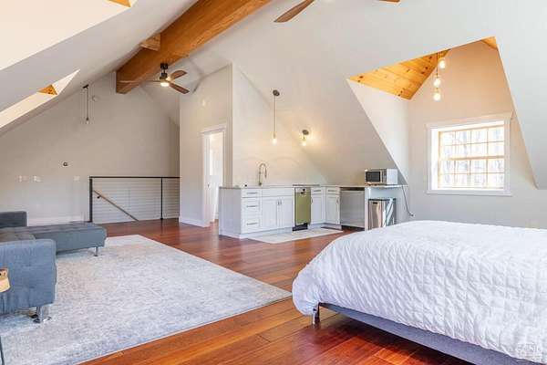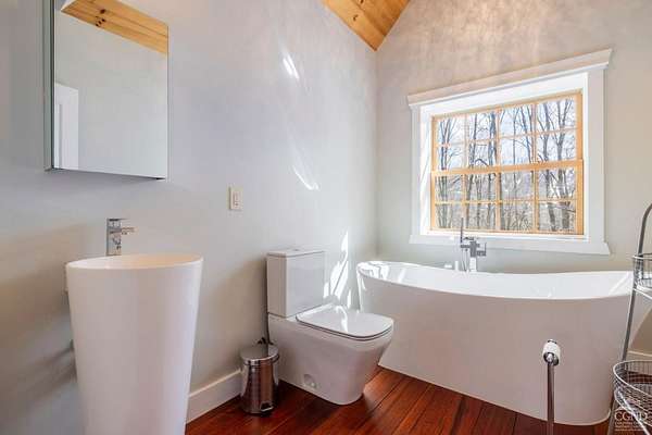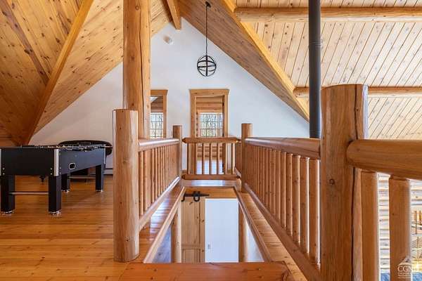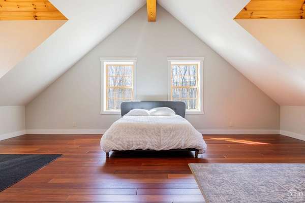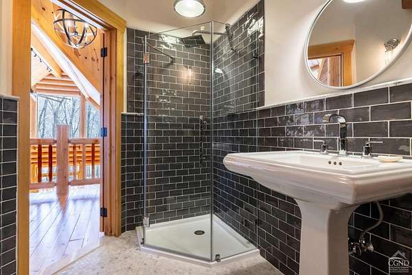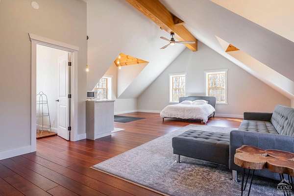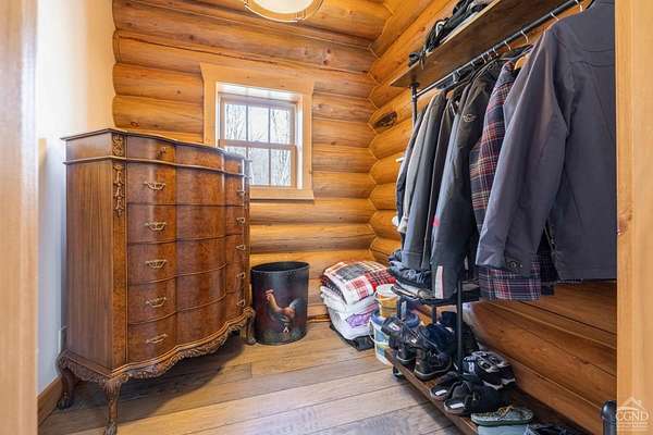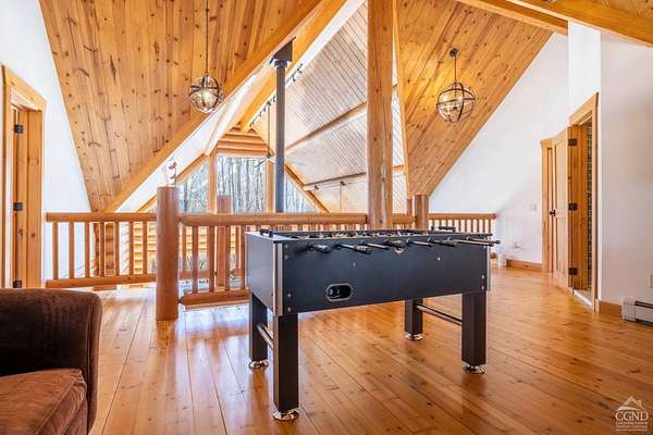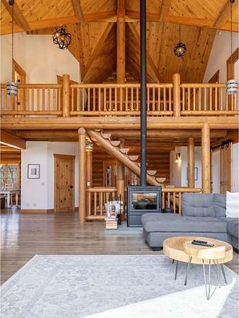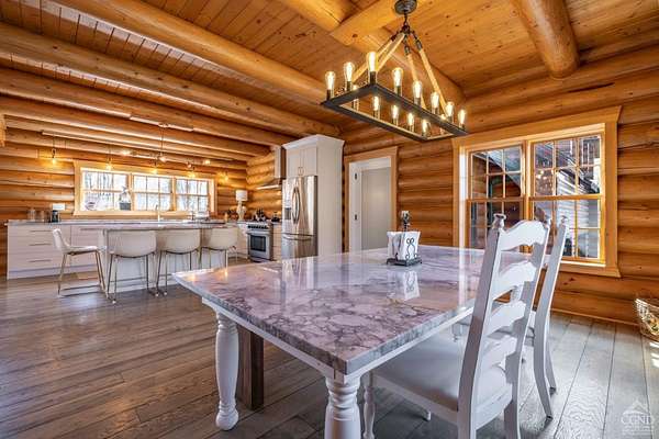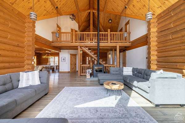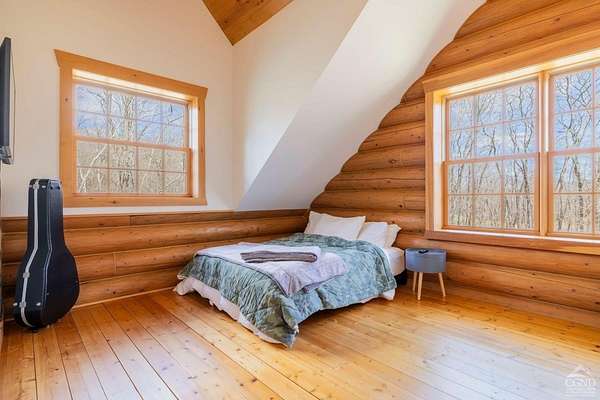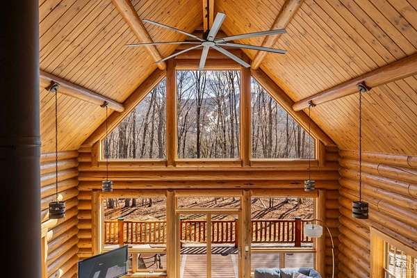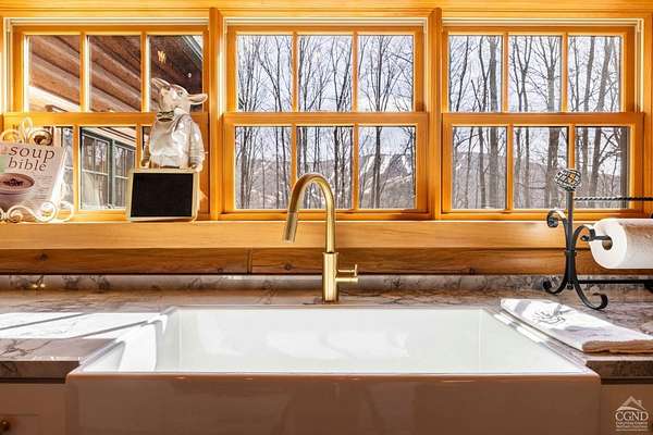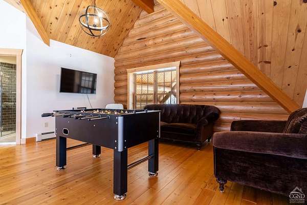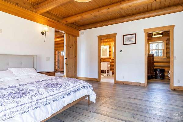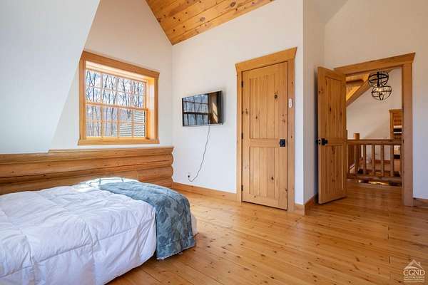 Custom Log Cabin with Modern Finishes, The Feel of a New Build, and Stunning Mountain Views- Nestled on nearly 2 acres, this breathtaking custom log cabin combines luxury, charm, and nature. Built with meticulous attention to detail, the home shows as if it is new construction, exuding a fresh and pristine feel throughout, making it indistinguishable from a brand-new build. With 5 bedrooms, 3.5 bathrooms, and a versatile accessory apartment above a heated 2-car garage, this home offers space, comfort, and endless possibilities. Overlooking Windham Mountain ski slopes, with views from almost every inch of the home, it's perfect for relaxation, gatherings, or as a premium rental investment. The open floorplan features gleaming wood floors and a wall of floor-to-ceiling windows that flood the home with natural light. The living room boasts soaring vaulted ceilings, a cozy wood-burning stove, and seamless access to an expansive wraparound deck, perfect for indoor-outdoor living. The chef's kitchen includes a farm sink, granite countertops, stainless steel appliances featuring a Thor range/oven and modern light fixtures, flowing into a welcoming dining area.The first-floor primary suite is a private retreat tucked behind barn doors, with a luxurious spa-like bathroom including a tiled walk-in shower, a soaking tub, a walk-in closet, and private deck access to a hot tub. Upstairs, the home offers three additional bedrooms, a bathroom, and a loft currently used as a game room but could also serve as the perfect home office. A laundry/mudroom connects the garage and main house. Above the oversized garage, the chic studio apartment features vaulted ceilings, wood floors, cable railing, stainless steel appliances, and a custom bathroom with a soaking tub perfect for guests or as a rental income opportunity with its own private entrance. Outside, relax in the hot tub on the deck while enjoying the incredible mountain views. The property includes a half-moon driveway, covered front porch, and a spacious basement that has been set up with the intention of future completion. Located 2.5 hours from NYC and 5 minutes from Windham Ski Resort, this meticulously crafted log cabin is move-in ready. Whether as a private retreat, vacation home, or investment property, this stunning home offers serenity, beauty, incredible potential. Schedule a private viewing today! A 3D Walkthrough Tour is available in the digital Lookbook or by request from the listing agent.