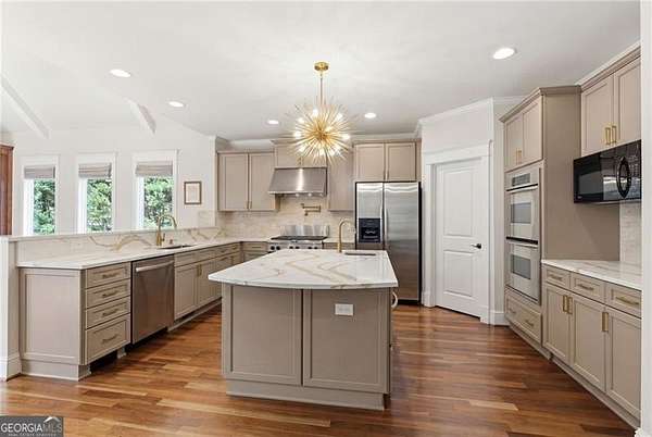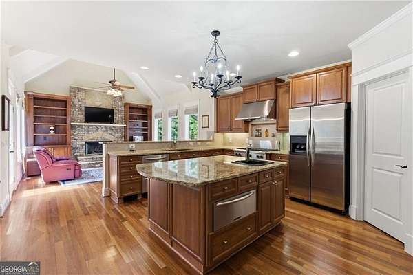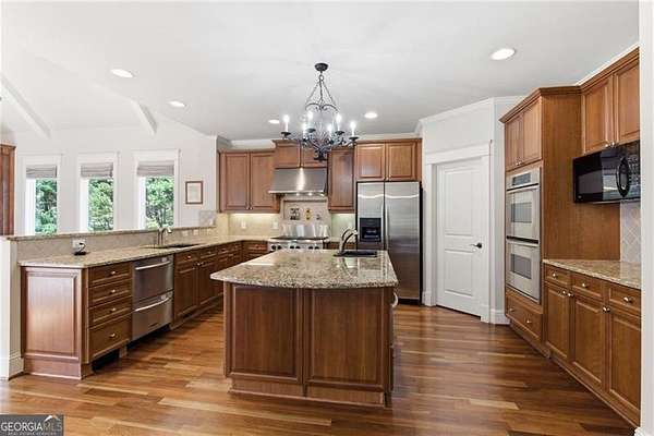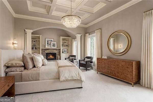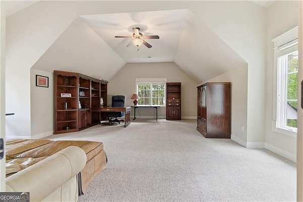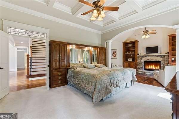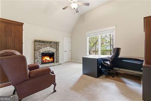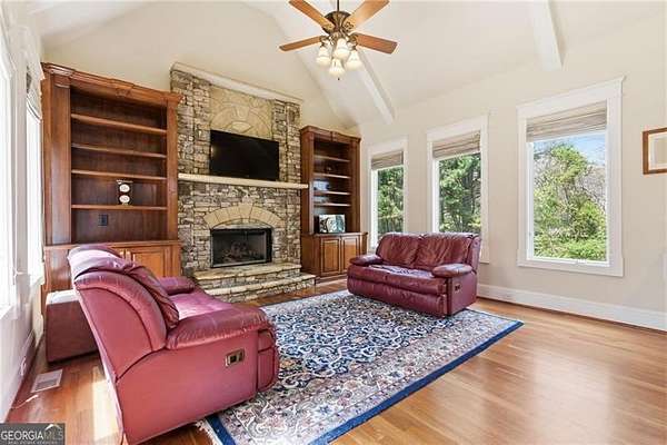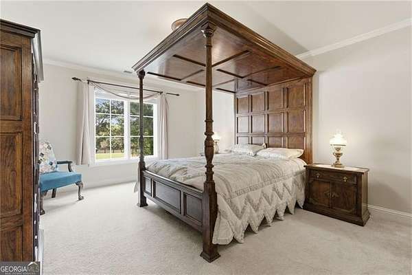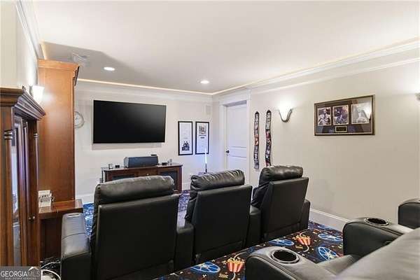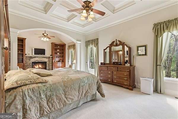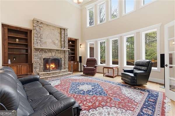 You feel it the moment you walk in-warm, inviting, and effortlessly elegant-this private 2-acre estate in gated Blackberry Ridge redefines what luxury living should feel like. Warmth and timeless design define this exceptional 4-sided brick estate on 2 private acres in gated Blackberry Ridge. Located in Cherokee County (lower taxes) and zoned for Creekview High School, this home offers luxury, privacy, and convenience just minutes from Milton, Crabapple, and Downtown Alpharetta. Inside, you'll find substantial custom millwork throughout-rich, architectural trim that sets this home apart-paired with mahogany hardwood floors, soaring ceilings, and 5 interior fireplaces. The main level features an oversized primary suite with sitting room, stacked stone fireplace, and custom built-ins, plus an additional bedroom and full bath-ideal for multigenerational living or a home office. The gourmet kitchen with granite countertops, gas range, walk-in pantry, and butler's pantry opens to the fireside keeping room-the true heartbeat of the home. Upstairs offers multiple ensuite bedrooms and flexible living space. The terrace level is a true extension of the home-finished to the same high standard as the main level and designed for entertaining. Highlights include a one-of-a-kind hand-built custom bar, an elevated theater room with ambient lighting entry, game areas, and multiple exterior access points. With abundant windows and doors, the space feels bright, open, and connected-not like a basement. Additional features include: 3 laundry rooms (one on each level),Oversized 3-car side-entry garage, level, private backyard-ideal for a future pool, Expansive 2-acre setting with exceptional privacy. A rare opportunity to own a private, move-in ready luxury estate in one of the area's most desirable gated communities.
