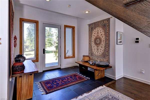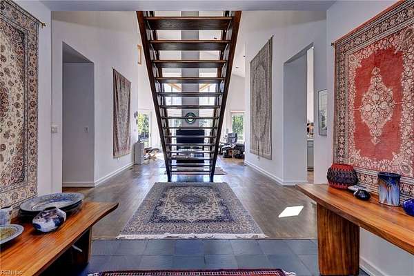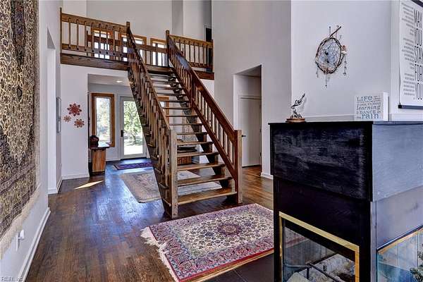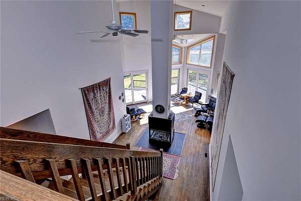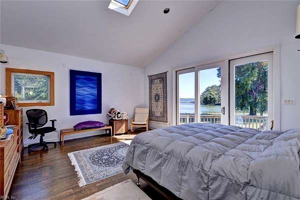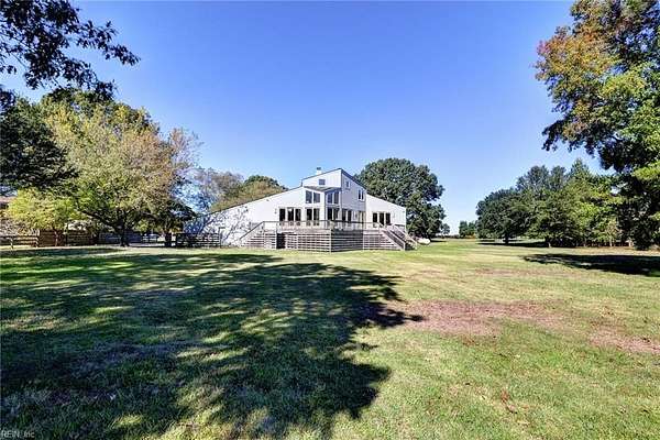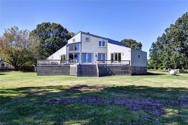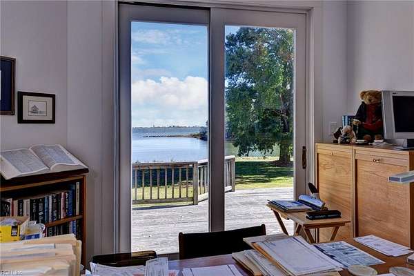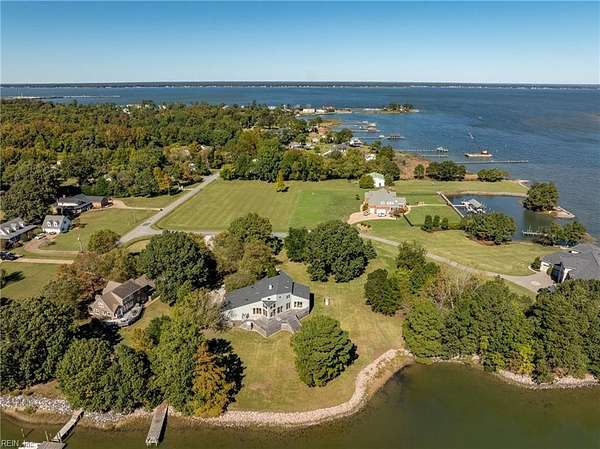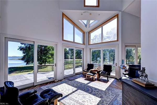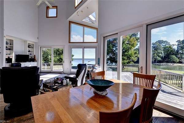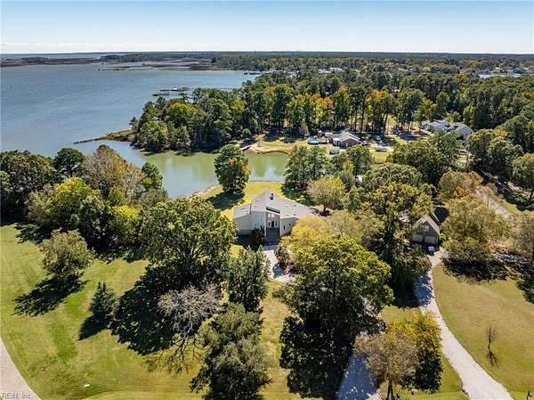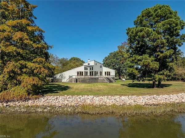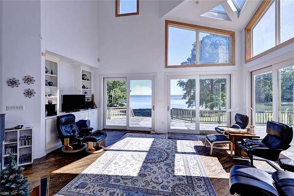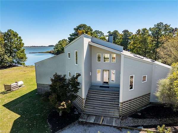 An amazing opportunity and first offering of this architectural gem situated on nearly 2 acres with stunning views of the Chesapeake Bay. New Roof 2021! A fantastic open floorplan featuring a stunning foyer with a statement staircase, floor to ceiling water views in the living room and amazing storage in the contemporary style kitchen. Wake up to the serene waterfront in the main level primary bedroom with vaulted ceilings, a massive closet and ensuite bath with dual sinks. Another bedroom, a well-sized office, a powder room and an additional utility room with main floor laundry complete the first floor. Upstairs, two additional bedrooms share another full bath. Additional storage and cedar closet above the huge three car garage! Outside, the extensive deck and private pier capture all the possibilities this amazing waterfront home can offer!
