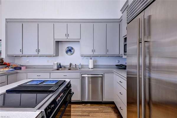 - Dishwasher, Dryer, Electric Range, Garbage Disposer, Microwave, Range, Washer