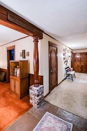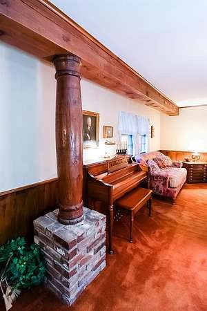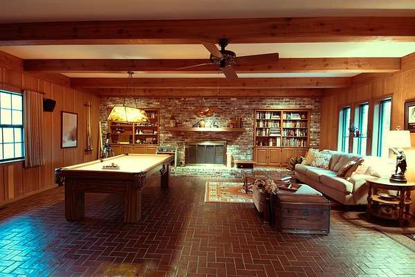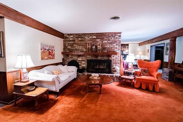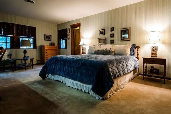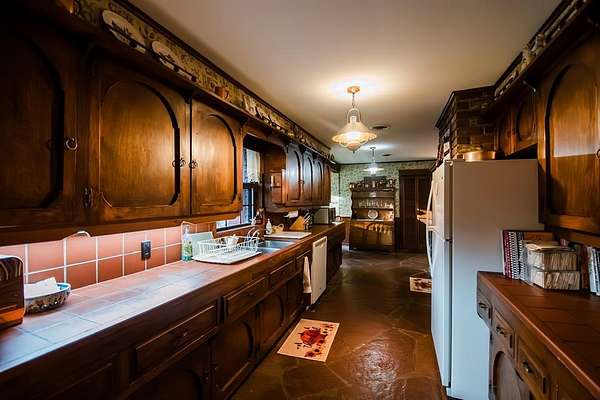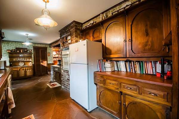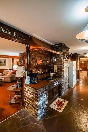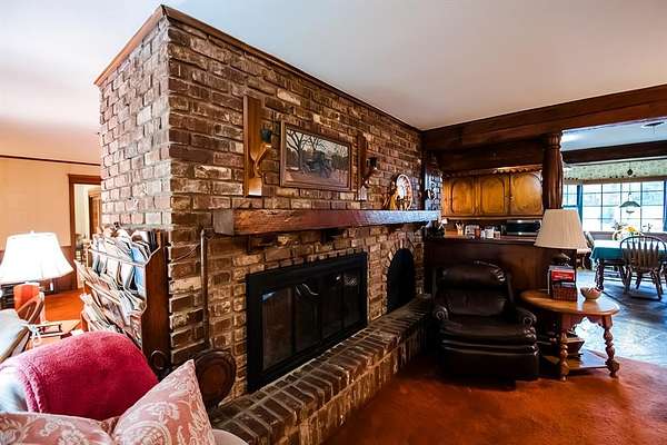 The kitchen wow factor: a natural rock floor, custom copper vent hood, soaking in rustic charm and real character. A double-sided brick fireplace makes cozy evenings feel effortless. Wet or muddy shoes? No worries--there's a roomy mudroom. Tons of storage, including a walk-in cedar closet that is fragrant, spacious, and perfect for organizing everything. Also has a basement for peace of mind during storm season, and lots of extra storage space. Step out to the deck in back, sit with your coffee, and watch deer or ducks edge toward your pond. It's a full nature scene, any day of the week. Whether you're entertaining or winding down, this home feels like a rural retreat with town convenience.