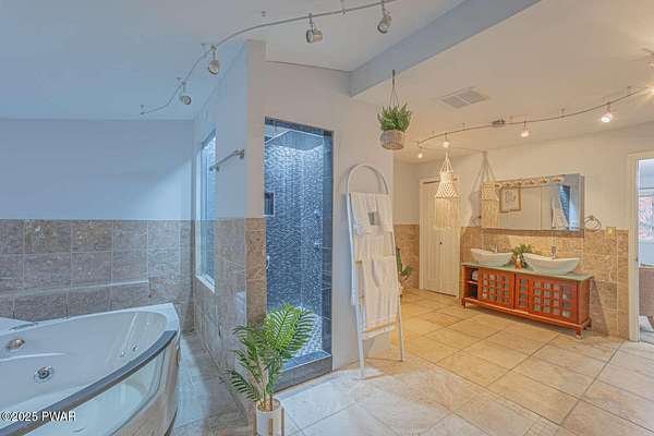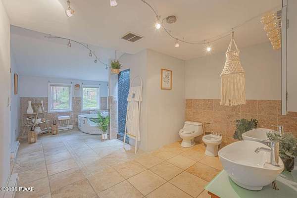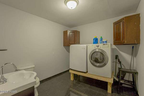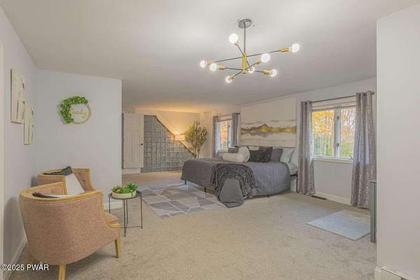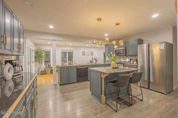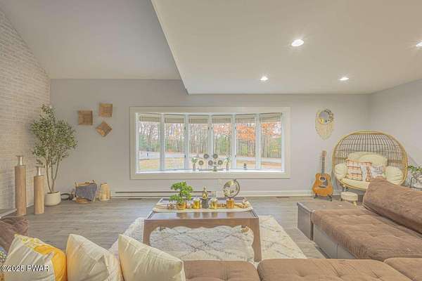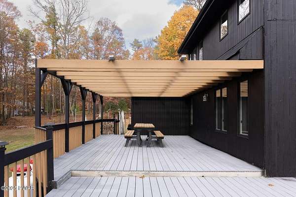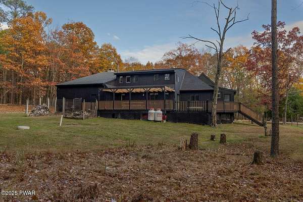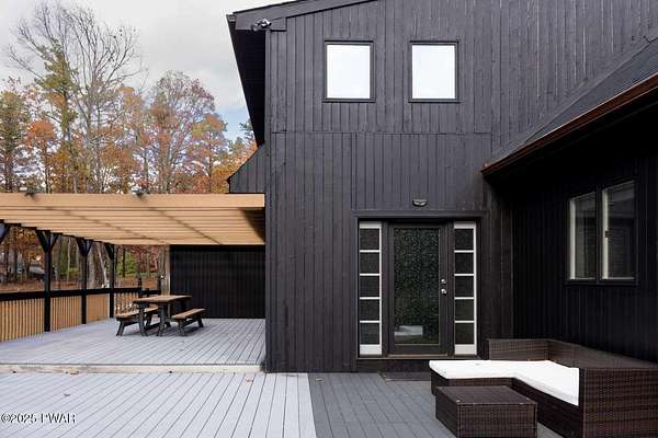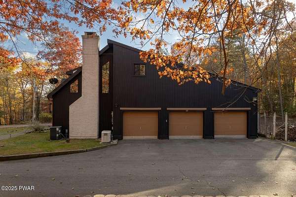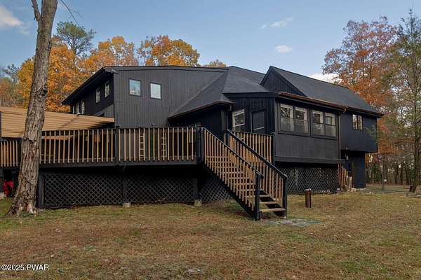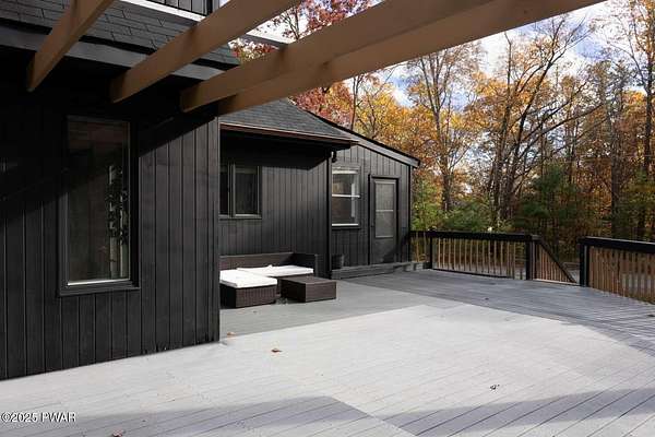 Modern 5bed, 3.5bath contemporary home on 1.57 serene acres in Dingmans Ferry. Over 5,500 sq ft with vaulted living room, loft and woodburning chimney. Family room with Bullerjan stove, bright sunroom and updated kitchen with modern finishes. Enjoy an approximate 1,000sq ft deck overlooking a wooded yard. Primary suite features walkin closet and en-suite bathroom with jet tub. Full basement includes bar, pool table and recreational space. Threecar garage, central air and heat, generator and ample attic storage. Peaceful culdesac, minutes from Delaware Water Gap, lakes, hiking trails and State parks with easy access to New Jersey and New York. A rare opportunity to own a statement home that blends, comfort, scale and privacy, designed for inspired living inside and out.