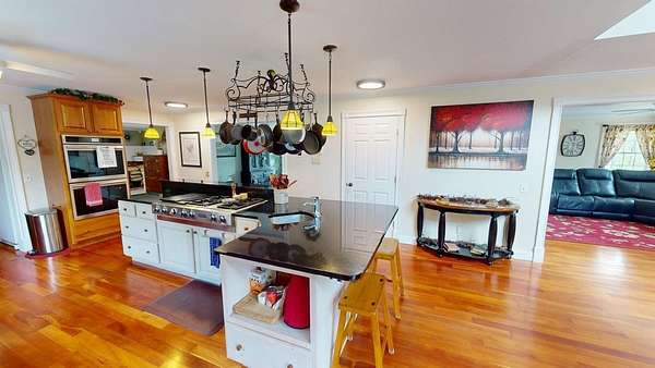 Pristine Colonial Retreat on 8.4 Acres in Guilford Welcome to this stunning Colonial-style estate nestled on 8.4 private acres in the heart of GuilfordaEUR"just minutes from the hospital, shopping, and all town conveniences. With nearly 5,500 square feet of beautifully appointed living space, this exceptional home offers the perfect blend of classic charm and modern luxury. Step onto the inviting farmers porch and into a spacious, light-filled interior that features: A full chef's kitchen with high-end appliances, custom cabinetry, and an attached catering kitchenaEUR"ideal for entertaining on a grand scale A great room with soaring ceilings, a cozy fireplace, and a game nook A formal living room and a welcoming entry mudroom with a charming gas "wood stove" for added ambiance A dedicated game room perfect for family fun or hosting guests Upstairs, you'll find: A luxurious primary suite complete with a steam shower and ample closet space Three additional bedrooms and a serene sitting room for quiet relaxation A state-of-the-art home theater for your private cinema experience Additional features include a two-car oversized, finished, and heated garage, a full walk-out basement offering endless potential, and professionally landscaped grounds providing privacy and space to roam. This property is a rare findaEUR"ideal for those seeking space, privacy, and high-end amenities, all just minutes from the heart of Dover Foxcroft and a short distance to Greenville and Moosehead Lake. Direct access to the snowmobile trails.