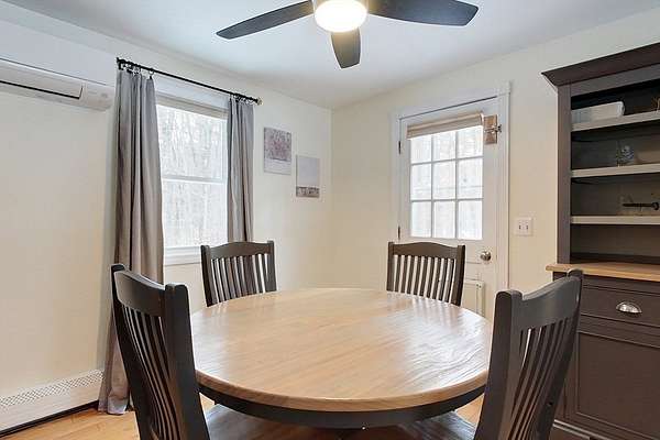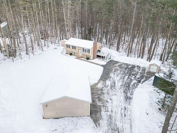 Beautifully maintained split-entry home set back on a private 1.75-acre lot. A sun-drenched upper level features hardwood floors, a spacious living room with bay window and electric fireplace insert, an open-concept feel enhanced by server windows connecting the living and dining areas. The kitchen offers stainless steel appliances, a complementary backsplash. A hallway leads to the full bath and 3 bedrooms. The lower level provides incredible flexibility and currently includes a home gym and steam sauna, w/ a slider leading to a patio overlooking the backyard, framed by brick retaining walls. Additional highlights include a vinyl deck, ductless mini-split systems, backup generator, some newer appliances, newer roof on the home(2018) & new roof on the detached garage(2024), new Weil McLain boiler w/accessories for the heating system installed summer 2025 and heated two-car garage! Don't miss out on this home that radiates with pride in ownership! Showings begin at Open House Sat.11-1.