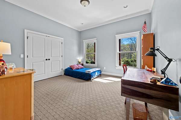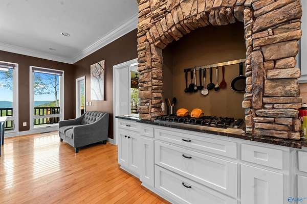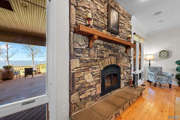 This fabulous 13 acre estate-fully stocked pond, amazing bluff views- Hampton Cove area, full concrete driveway, wooded land, hunting, generator & so much more! Large Great Room w/ wall of windows that overlooks the flat back yard w/ bluff view, fireplace & hardwood floors w/ 10 ft ceilings. Kitchen-Viking gas range w/ arched stone surround, massive island, tons of cabinets, HW floors w/ access to the large covered deck. 4 bedrooms, 5 baths w/ en suites. Safe room/storm shelter w/ door that leads to crawlspace. Wine room w/cooling system. Office located off the Primary -bedroom. Primary bedroom faces bluff views, has glamour bath, separate shower. 2 Rinnai, security system,AT&T fiber!