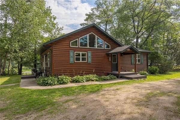 Welcome to the Woman Lake Chain of Lakes! This home offers classic Northwoods style with beautiful log exterior detailing, a covered entry, and a generous wraparound deck overlooking a spacious yard. Inside, the open-concept kitchen, dining, and living areas sit beneath a soaring cathedral ceiling finished in knotty pine. The living room features a stone gas fireplace, log walls, and windows in the peaks that bring in great natural light. The kitchen is large, with ample cupboard space, and both bedrooms are comfortably sized, one with a charming bay window. There are two bathrooms and knotty pine finishes throughout. Located on the Woman Lake Chain, offering access to over 6,000 acres of water to explore; the setting, space, and craftsmanship make this a great up-north retreat.