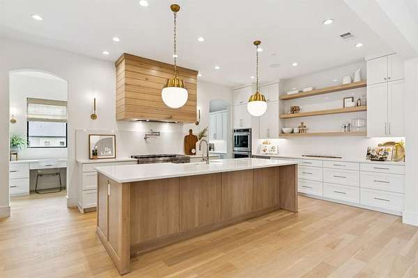 - Built-In Features, Cable TV Available, Cathedral Ceiling(s), Chandelier, Decorative Lighting, Double Vanity, Eat-In Kitchen, Flat Screen Wiring, Granite Counters, High Speed Internet Available, Kitchen Island, Natural Woodwork, Open Floorplan, Paneling, Pantry, Second Primary Bedroom, Smart Home System, Sound System Wiring, Vaulted Ceiling(s), Walk-In Closet(s)