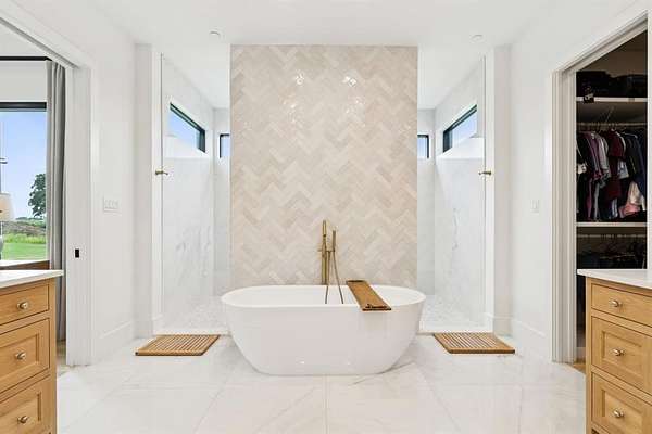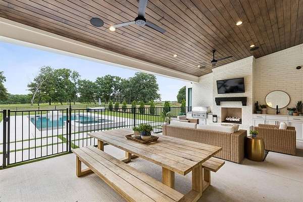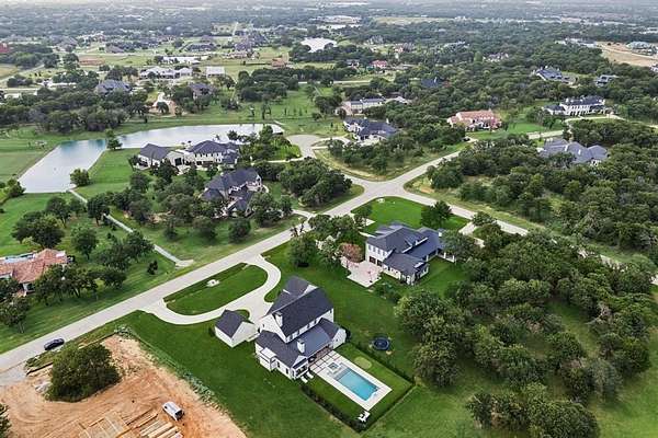 Positioned at the highest point in the coveted Hat Creek Estates, this masterpiece sitting on 2 acres offers unmatched views and elevated living in one of Argyle's most elite neighborhoods. Designed by architect Luis Olivares and crafted by Axiom Home Builders in 2021, this home combines timeless elegance with modern comfort and high-end functionality. Enjoy panoramic views that stretch across the lush treed greenbelt in the back and a tranquil waterfall pond in the front - creating a serene and picture-perfect setting every single day. Surrounded by multi-million dollar estates, this property is right at home among Argyle's finest. Inside, the open-concept floor plan is a true entertainer's dream. The chef's kitchen features commercial-grade appliances, a spacious butler's pantry, and flows effortlessly into the dining space and expansive living area. Thoughtfully designed details include self-closing drawers and cabinetry, and a full-home custom audio and visual system with centralized controls. Step outside to your covered patio complete with outdoor kitchen and fireplace, ideal for year-round gatherings. Enjoy your private resort-style oasis featuring an 8-foot deep, heated pool with integrated spa, synthetic turf, and a custom putting green. Additional highlights include custom designed window treatments, an oversized 4-car garage and zoning to top-rated Argyle ISD, with Liberty Christian School just minutes away. This is true country estate living with urban convenience - Target, Whole Foods, and other amenities are all within 15 minutes.