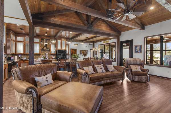 Welcome to Fullington Farms, an 85.4-acre turn-key estate in Copiah County, MS, where luxury meets functionality. This remarkable property is designed for efficient operation as a working farm while offering endless opportunities for recreation and investment. It boasts 60 +/- acres of cross-fenced pastures, 25 +/- wooded acres with a live creek, a 1-acre stocked pond, and a stunning 2,850 sq. ft. farmhouse complemented by a luxurious gunite saltwater pool and spa. The farm's state-of-the-art facilities make it ideal for agricultural pursuits or as a versatile event venue. The property includes a spacious 120 ft x 60 ft livestock barn with 7 cattle stalls, 2 horse stalls, and a wash rack; a 70 ft x 50 ft hay shed; a 5-bay workshop with an attached office and half bath; and a 70 ft x 70 ft multi-use pavilion outfitted with a kitchenette, two restrooms, a fireplace, and a speaker system. Additional facilities include a 50 ft x 25 ft equipment storage shed and an RV storage awning with a grilling area, ensuring everything you need is within reach. The centerpiece of the property is the luxurious farmhouse, featuring 3 bedrooms and 3 bathrooms. The main living room offers vaulted, beamed ceilings and a wood-burning stone fireplace, while a second living room features similar architectural details with a gas fireplace. The chef's kitchen is a dream, showcasing granite countertops, a farm sink, a large island, and a high-end 6-burner gas range with a pot filler faucet. The primary bedroom suite includes two walk-in closets, a tiled shower, and a claw-foot tub, while the guest bedrooms share a convenient Jack-and-Jill bathroom. Outdoor living is elevated with a large screened-in back porch overlooking the sparkling pool and lounging area, with a backup generator ensuring uninterrupted comfort. Beyond its agricultural appeal, Fullington Farms is a recreational paradise. The 25 wooded acres, stocked pond, and live creek are perfect for hunting, fishing, hiking, horseback riding, or camping. Whether you envision fishing retreats, outdoor adventures, or quiet relaxation, the possibilities are endless. The property's versatility also opens doors to lucrative opportunities. The multi-use pavilion is perfect for hosting weddings, retreats, or community events, while the farmhouse could easily transform into a luxury vacation rental or retreat center. Whether you're looking for a functional farm, a recreational haven, or a profitable investment, Fullington Farms is unmatched in its offerings. Don't miss the chance to experience the luxury, functionality, and potential of Fullington Farms. Schedule your private tour today and see how this extraordinary estate can bring your vision to life.