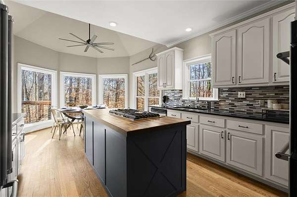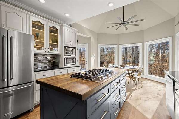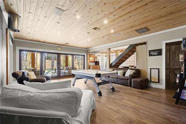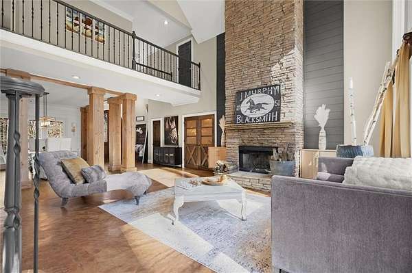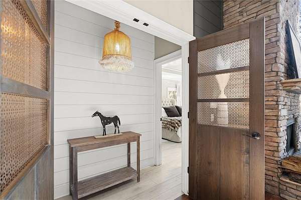 Are you looking for land, lifestyle, and privacy? This is not just a home, but 5 acres of pure sanctuary! Nestled among mature trees and located just minutes from the Milton line, this stunning estate offers exceptional privacy while remaining close to top amenities. From the moment you arrive at the impressive custom, African wood double doors, you are welcomed into a two-story entryway that opens to the formal dining area with custom posts.The soaring two-story family room features a striking stone fireplace and expansive panoramic windows that flood the home with natural light providing serene views of the wooded landscape. The chef's kitchen is ideal for entertaining and everyday living, showcasing granite countertops, double ovens, a butcher block island with gas cooktop, and a breakfast area with panoramic windows. The main-level owner's suite is a true retreat, featuring an updated spa-like bath with dual vanity, tiled steam shower, a gorgeous clawfoot tub, toilet and bidet, plus a spacious walk-in closet that is every owner's dream. The main level laundry room and 1/2 bath complete the main level. Upstairs, three generously sized secondary bedrooms share a guest bath with double sinks and a separate tub/shower combination. Downstairs, the terrace level is perfect for entertaining offering a large kitchenette with 2 dishwashers, oversized walk-in pantry, game room, office, gym, and a dedicated home theater. Every area of the home is thoughtfully designed with distinct custom features that add depth, character, and personality. New windows throughout home replaced in 2021. Step outside to the covered lanai overlooking the heated saltwater pool and spa, complete with a fun outdoor bar as well as a fire pit area. Children will love the custom-built treehouse with electricity, adding even more charm to this incredible property. For the equestrian enthusiast, the property truly shines with two fenced pastures, a four-stall barn featuring a tack room, wash area, and hay loft. A riding trail is located towards the front of the property. Additional highlights include a spacious chicken coop (chickens included!) and an adorable bunny hutch. All of this is located within an award-winning school district. This rare gem offers a lifestyle few properties can match-schedule your private tour today!
