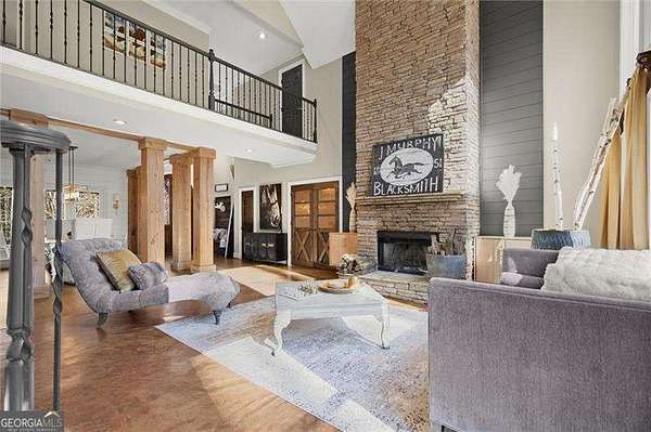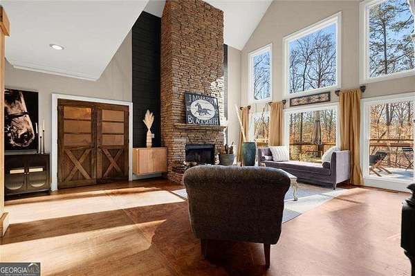 Nestled among mature trees and located just minutes from the Milton line, this stunning 5 acre estate offers exceptional privacy on one of the most exclusive streets in Canton. From the moment you arrive at the impressive custom, African wood double doors, you are welcomed into a two-story entryway that opens to the formal dining area with custom posts.The soaring two-story family room features a striking stone fireplace and expansive panoramic windows that flood the home with natural light providing serene views of the wooded landscape. The chef's kitchen is ideal for entertaining and everyday living, showcasing granite countertops, double ovens, a butcher block island with gas cooktop, and a breakfast area with panoramic windows. The main-level owner's suite is a true retreat, featuring an updated spa-like bath with dual vanity, tiled steam shower, a gorgeous clawfoot tub, toilet and bidet, plus a spacious walk-in closet that is every owner's dream. The main level laundry room and 1/2 bath complete the main level. Upstairs, three generously sized secondary bedrooms share a guest bath with double sinks and a separate tub/shower combination. Downstairs, the terrace level is perfect for entertaining offering a large granite kitchenette with 2 dishwashers, oversized walk-in pantry, game room, office, gym, and a dedicated home theater. Every area of the home is thoughtfully designed with distinct custom features that add depth, character, and personality. Step outside to the covered lanai overlooking the heated saltwater pool and spa, complete with a fun outdoor bar as well as a fire pit area. Children will love the custom-built treehouse with electricity, adding even more charm to this incredible property. Additional highlights include 2 fenced pastures, a 2 level storage barn and a spacious chicken coop (chickens included!) and an adorable bunny hutch. Recent improvements include 2 BRAND NEW HVAC Systems (a 4 ton unit and 2 ton unit), as well as all new windows replaced in 2021. All of this is located within an award-winning school district. This rare gem offers a lifestyle few properties can match-schedule your private tour today!