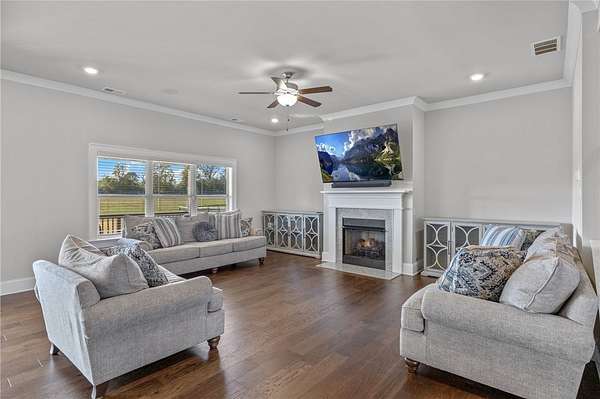 This is the rare combination of land, space, location, and schools-all in one remarkable property. Welcome to 1020 Omega Farms, located in a quiet, rolling community known for its estate-sized homesites and peaceful surroundings. Set on a beautiful 1.7-acre lot, this home offers exceptional privacy while still being convenient to everything, including the highly sought-after Wren Schools. Inside, you'll find a large, comfortable layout designed for both daily living and entertaining. The main floor includes a spacious formal dining room, a study/home office, and a flexible bedroom with its own ensuite bath. The gourmet kitchen is a chef's dream with plenty of counter space, stainless steel appliances, granite countertops, tile backsplash, and beautiful cabinetry. Craftsman-style trim, 5" hand-scraped hardwood floors, and an open wrought-iron staircase add character throughout the main level. Upstairs offers generous secondary bedrooms featuring a Jack-and-Jill bath and a separate ensuite. The media room with wet bar and additional loft provide the perfect setup for movie nights, gaming, or relaxation. The owner's suite includes a sitting area, multiple walk-in closets, and a spa-style bathroom with a large tiled shower, separate soaking tub, dual vanities, and elegant tile flooring. Enjoy outdoor living on the enlarged covered deck overlooking the sprawling 1.7-acre homesite, complete with irrigation. This property gives you the room and freedom to create whatever outdoor lifestyle you envision.