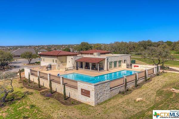 Over an acre of hill country views and oak trees, located in Champagne Hills, a gated section in the highly coveted Vintage Oaks. Embrace the lifestyle with world class amenities including resort style pools, lazy river, outdoor kitchen, sports & fitness facilities, walking/biking trails, playground. Community events throughout the year with concerts and social activities for all ages. Highly rated Comal ISD schools, no city taxes and minutes from New Braunfels, Spring Branch and Canyon Lake. Builder plans and engineer report available.