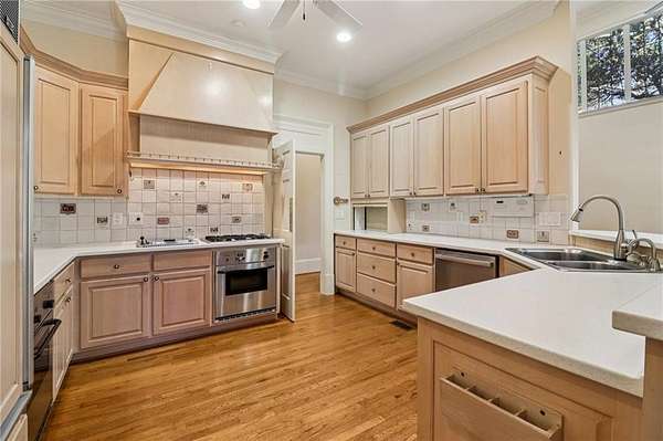 - Dishwasher, Disposal, Electric Oven, Gas Cooktop, Microwave, Range Hood, Refrigerator, Trash Compactor
