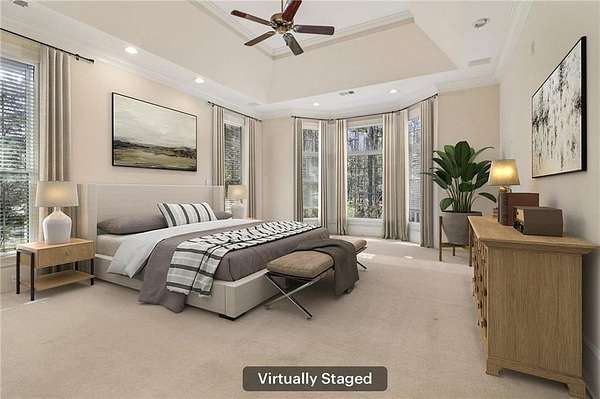 - Bookcases, Crown Molding, Tray Ceiling(s), Vaulted Ceiling(s), Walk-In Closet(s), Wet Bar