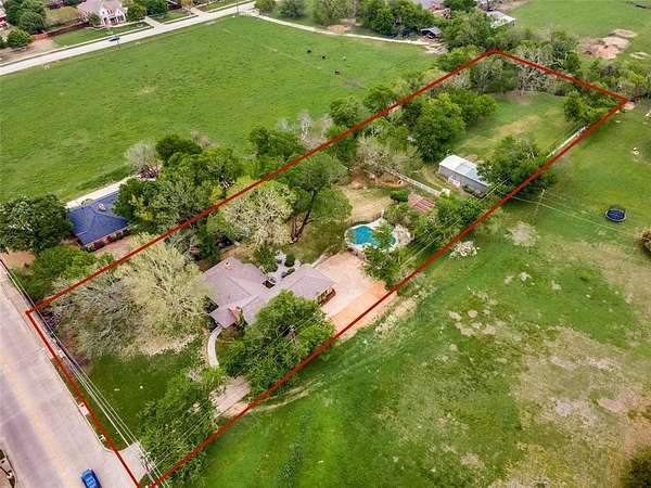 Inside, the home blends comfort and elegance with four spacious bedrooms and three full baths. The brand new, fully renovated kitchen boasts commercial grade appliances, marble counters, custom cabinetry, opens to a warm dining area with a fireplace. A large living room, massive utility room, abundant storage, and three fireplaces throughout create both functionality and charm. All the conveniences of city living with the serenity of a rural sanctuary surrounding you. Just minutes from the Dallas North Tollway, less than a mile from the vibrant Frisco Rail District, shopping, coffee shops, restaurants, parks, sports facilities, FCS Stadium, and only five minutes to PGA Headquarters. Country soul. City access. Completely unforgettable and absolutely one-of-a-kind in Downtown Frisco. Photos coming soon!