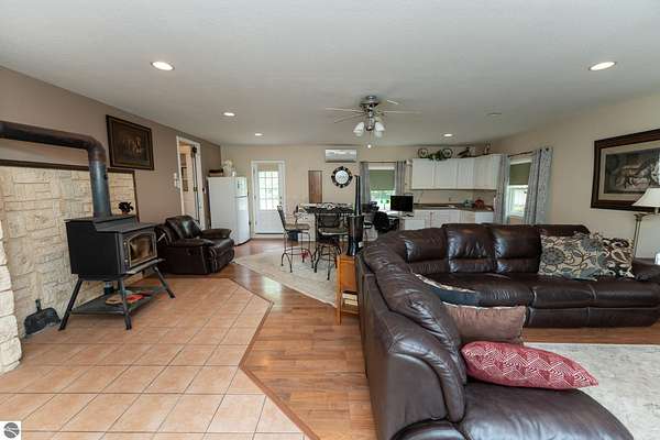 Step into this meticulous home that has never been on the market! This 5 bedroom, 2 bath home is ready to be called home. This amazing home includes a great room with kitchenette, wood stove, living area, a full walkout basement with fireplace and bar ready to be finished, and full baths on both levels. Walk outside to approximate 14 acres with a immaculate 4 car, heated pole barn, car hoist, 1/2 bath, 200 amp service, and even an additional 1 car 24x24 garage. It also features a new septic in 2023, newer roof with warranty, irrigation, and a beautifully landscaped yard! This truly is a one of a kind property you must check out! *(2) Parcels are currently 18.23 acres being split down to approximately 13.93 acres.